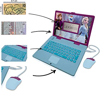 | nameOriginal | Lexibook Disney Frozen 2 – Educational and Bilingual Laptop Spanish/English – Girls Toy with 124 Activities to Learn, Play Games and Music with Elsa & Anna – Blue/Purple,JC598FZi2 |