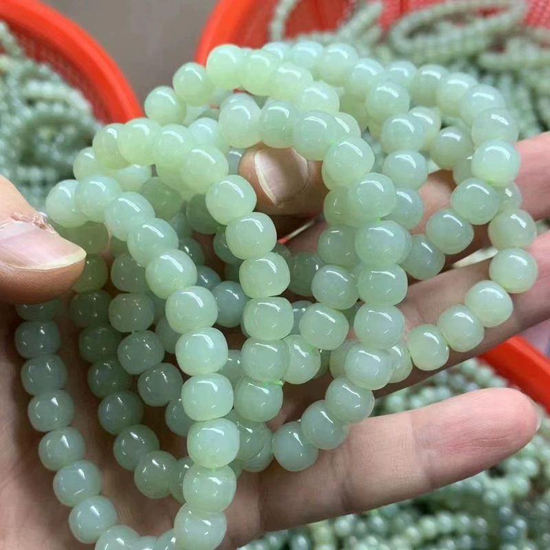 Bingqingshui Hetian Jade Bracelet 108 Wenwan Buddhist beads for men, gradient old-shaped barrel beads, jade bracelet for women, soft around the finger