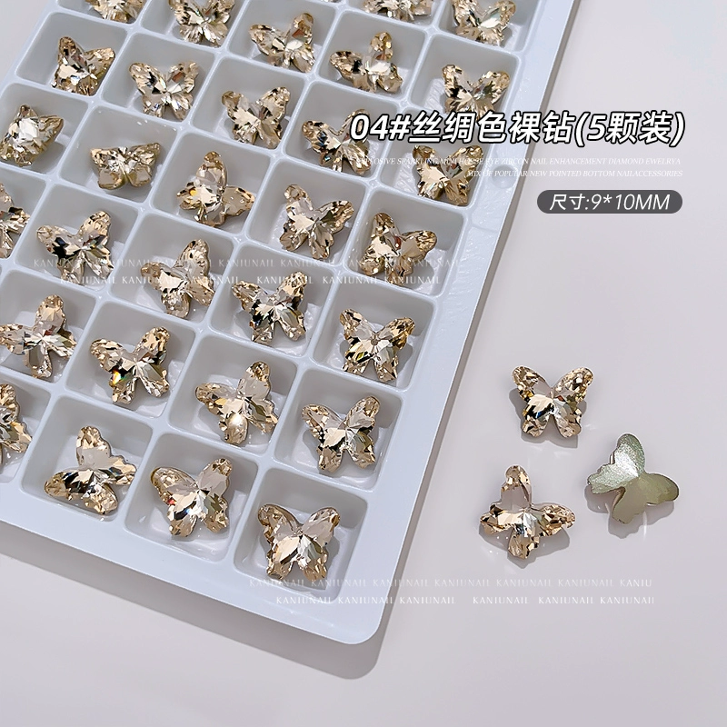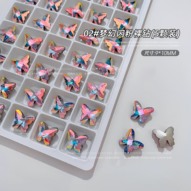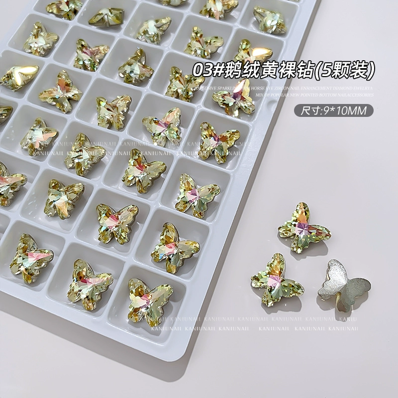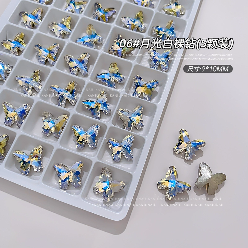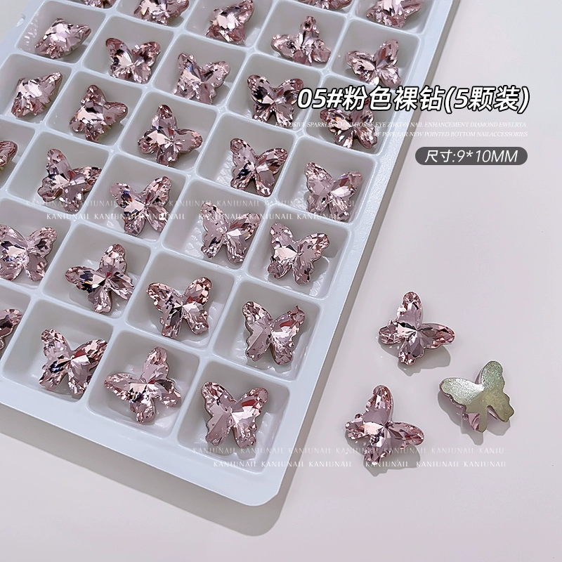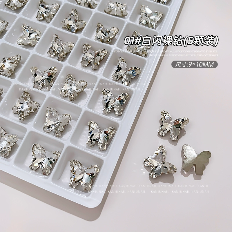 Bird's Nest Butterfly Diamond Jewelry Internet Celebrity Hot Style 2024 New Nail Art Boutique K9 Explosive Multi-faceted Nail Decoration Sticker