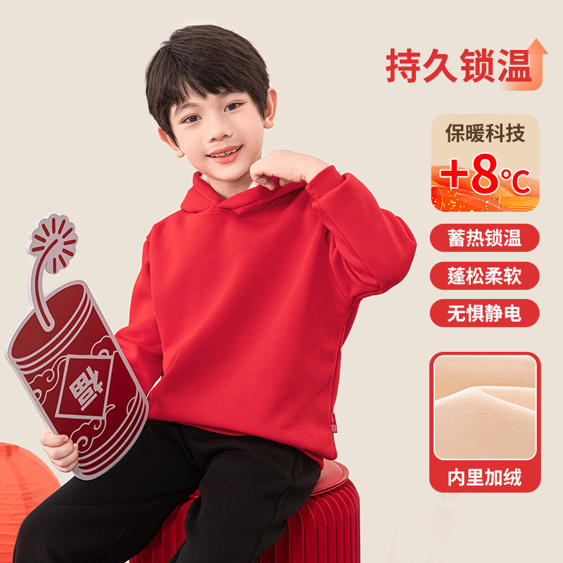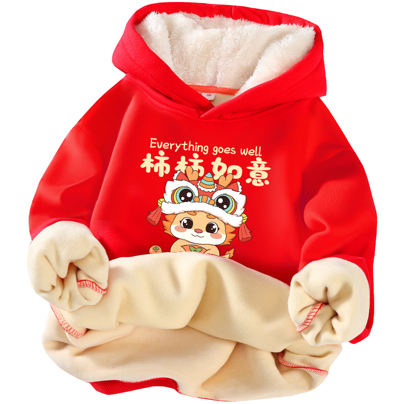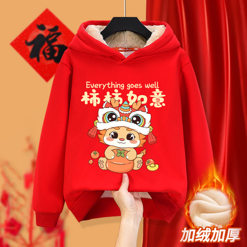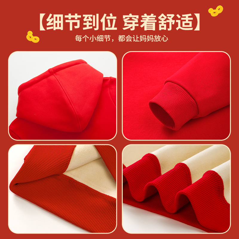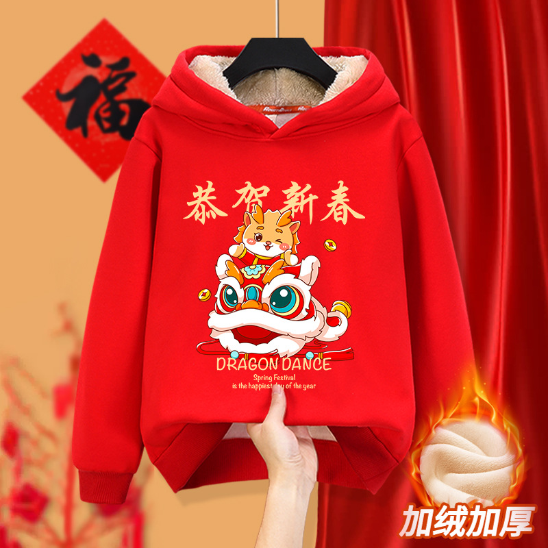 Birth year red thick cotton T girl fleece-lined Dragon year boy's clothing 2024 New Year girl's New Year clothes 12 years old