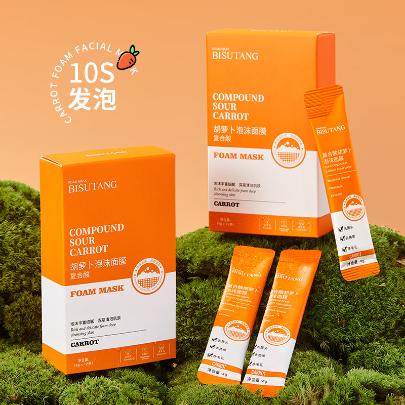 | nameOriginal | Bishutang self-foaming composite acid carrot mask oil control cleaning mud film bubble mask spot wholesale custom |