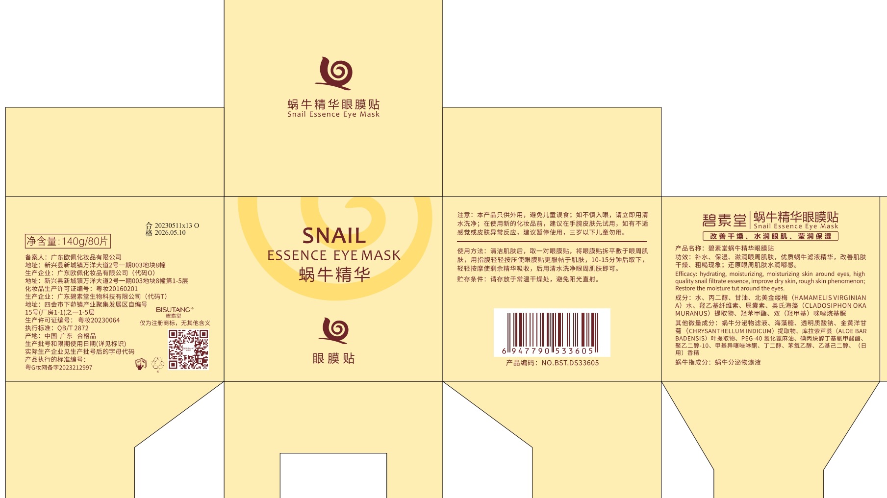 | nameOriginal | Bisutang snail essence eye mask light fine lines eye pattern eye bag moisturizing eye protector wholesale a box of 96 |