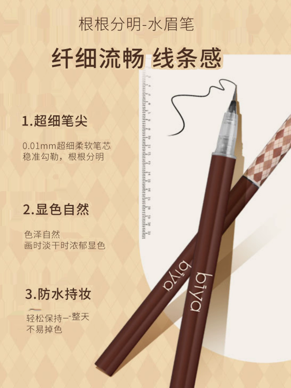 | nameOriginal | Biya water eyebrow pencil is waterproof, sweatproof, long-lasting, not easy to fade, fine head, natural wild eyebrow feeling, silkworm pen for women |