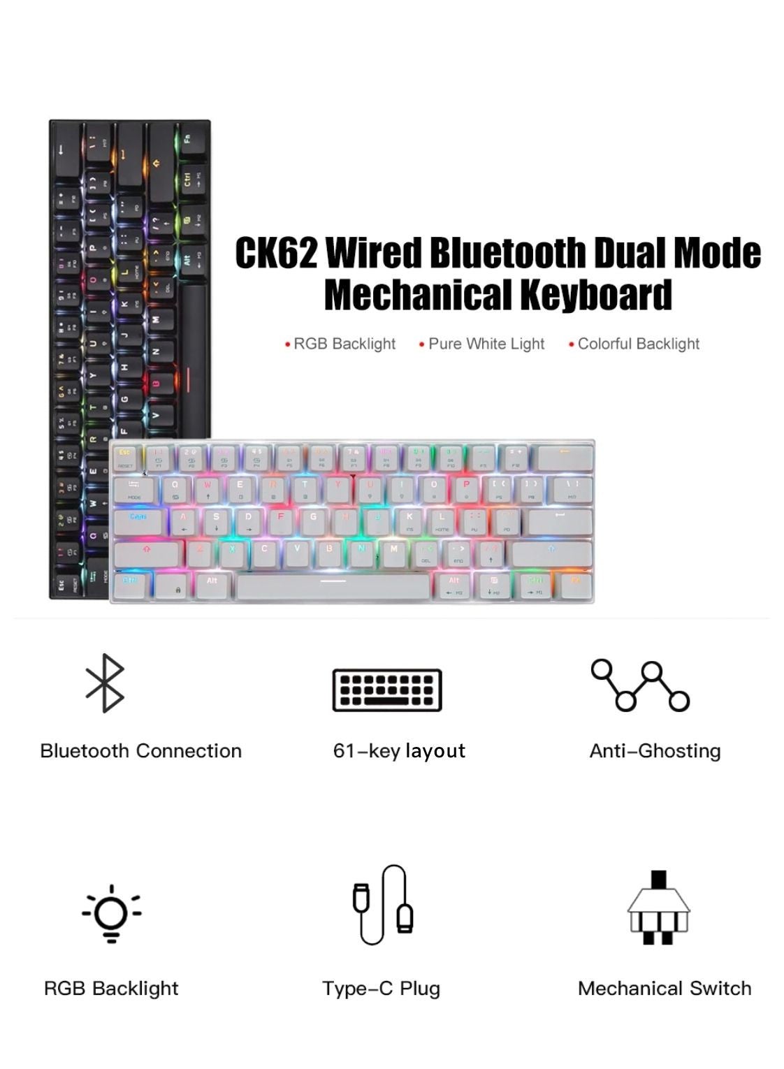 This keyboard features both Bluetooth and USB Type-C wired dual-mode connectivity, giving you the flexibility to use it with a variety of devices. The black Outemu Blue Switches provide a tactile and responsive typing experience, perfect for gaming or typing.