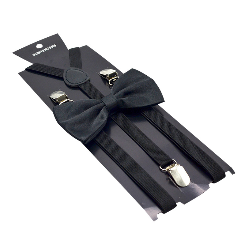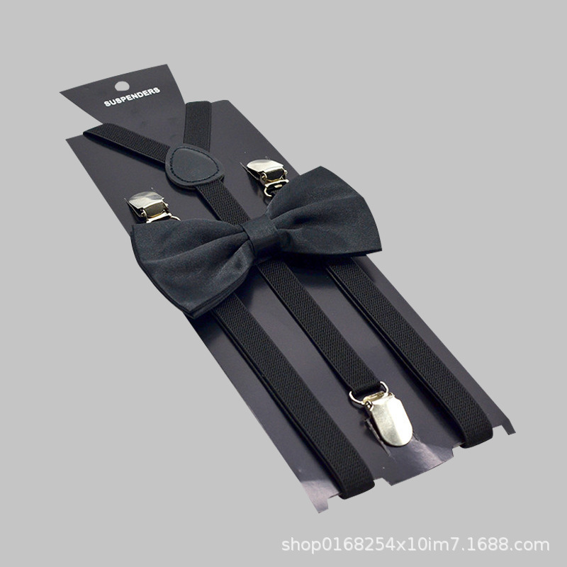 Black Adult Unisex Strap Bow Tie Package 1.5cm Strap Clip Sling Non-slip Adjustable Pants Clip Thin 3 Clips