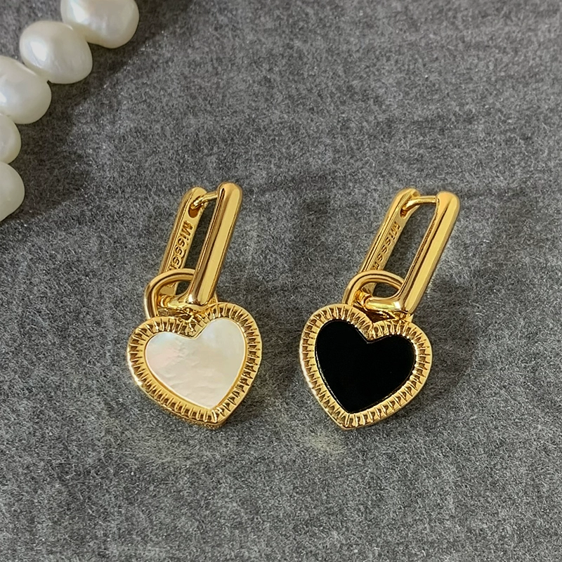 | nameOriginal | Black agate natural white mother-of-pearl earrings for women, double-sided love niche design, high-end earrings, ear buckles, retro earrings |