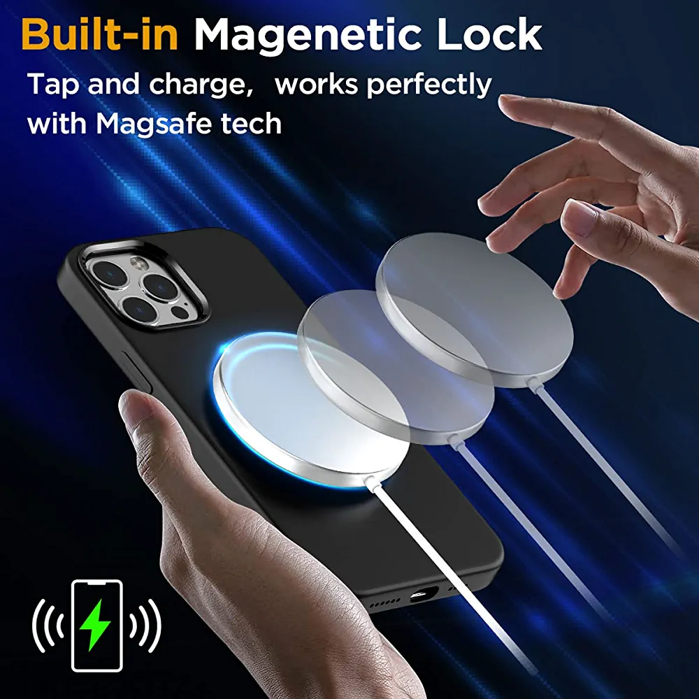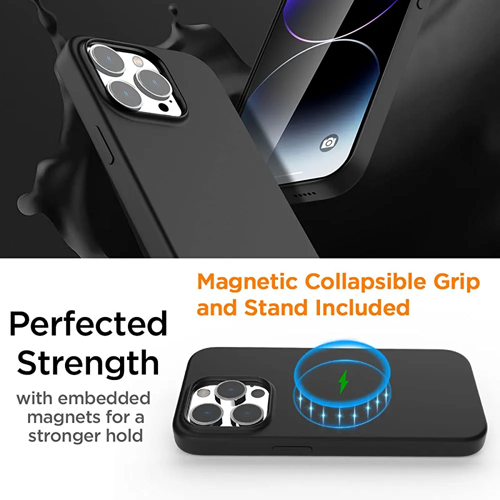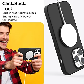 Introducing the AICase Silicone Magnetic Case, designed specifically for the iPhone 14 Pro. This case is equipped with 38 built-in magnets that utilize MagSafe technology to securely snap your case onto your device, making wireless charging a breeze. Additionally, the case comes with a detachable magnetic MagSafe phone grip that stays strongly secure on your iPhone 14 Pro without the need for adhesive tapes or sticky residues.