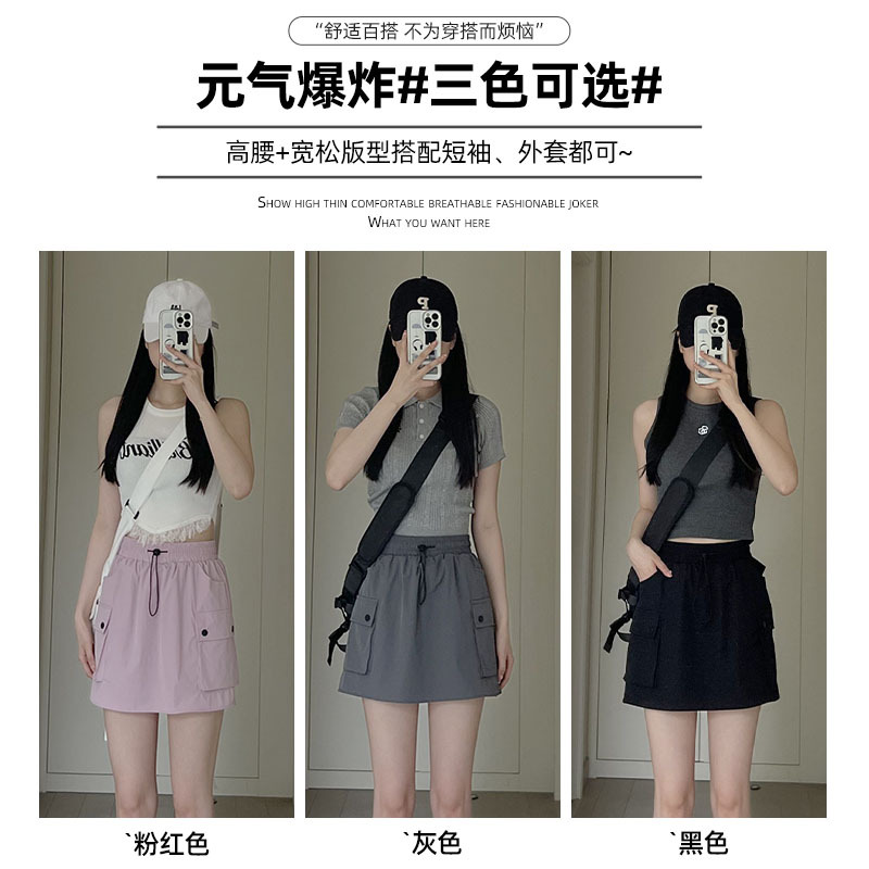 | nameOriginal | Black American Style Tooling Skirt Women's Summer Thin 2024 New Quick-drying A- line High Waist Slimming Skirt for Small Men |