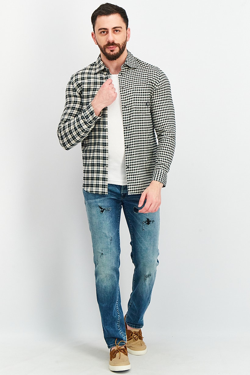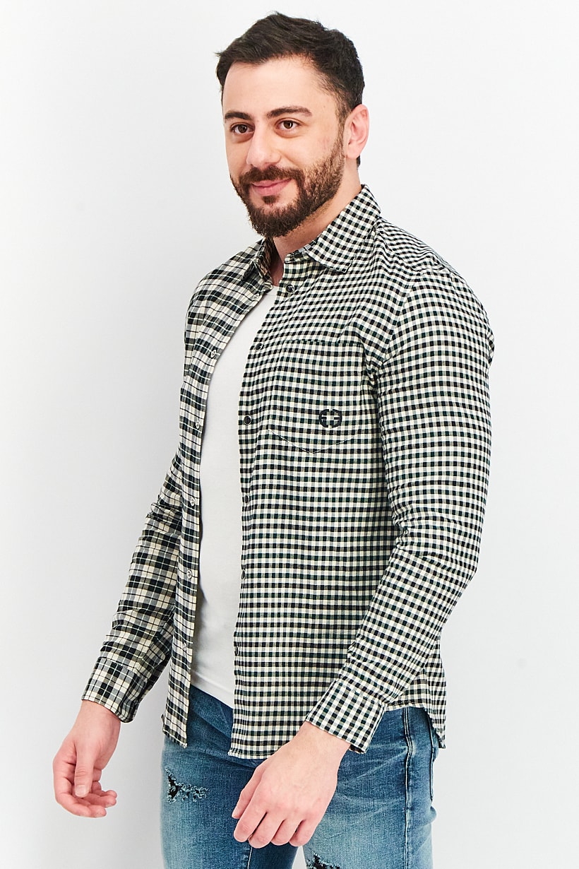 | nameOriginal | Men Regular Fit Checkered Long Sleeves Casual Shirt, Black/Beige |