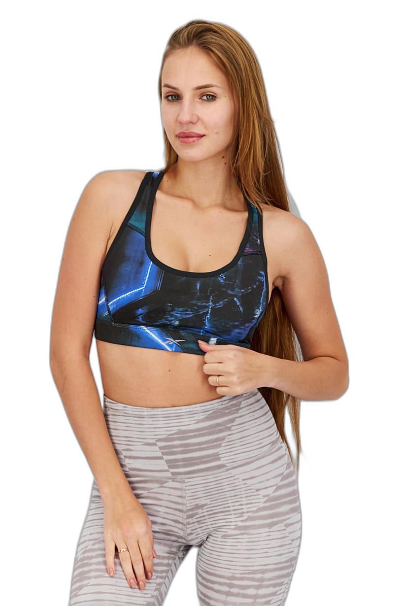 | descriptionOriginal | Bottom Hem : Straight, Care : Machine washable, Fit : Sportswear Fit, Size shown : International, Thickness : Light, Type of Sport : Training, Disclaimer : Product color may slightly vary due to photographic lighting sources or your monitor settings., Fabrics : 85% Polyester, 15% Spandex, Occasion : Sport, Pattern & Print : Brand Logo, Sportswear Type : Sports Bra, Types of Closures : Pullover, Color Family : Black, Blue, |