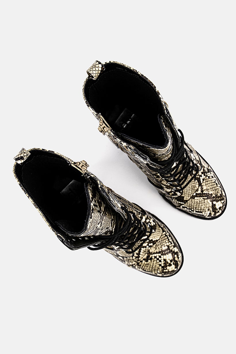 | sub_Categories | Shoes, Boots, women ayleen snakeskin combat boots black and brown |