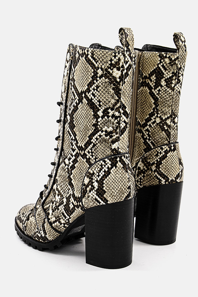 | nameOriginal | Women Ayleen Snakeskin Combat Boots, Black and Brown |