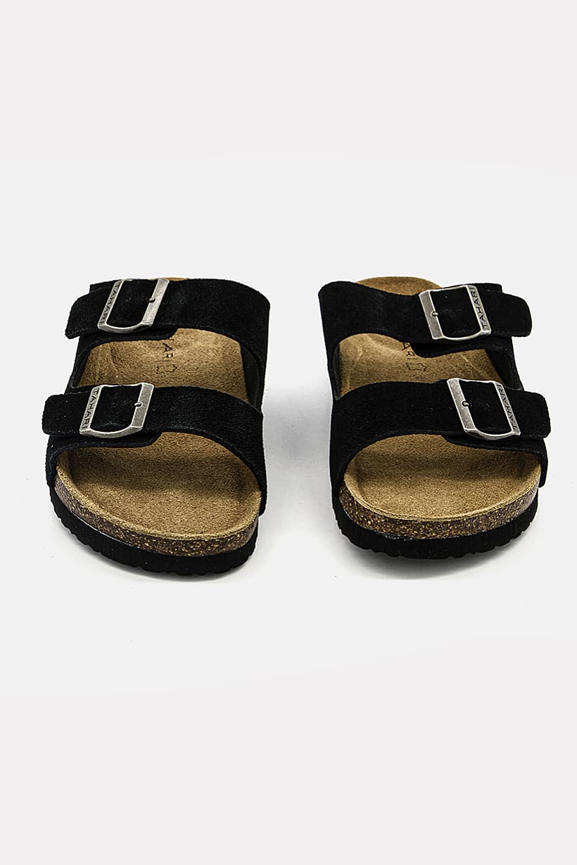 | nameOriginal | Women Slip On Suede Cork Slippers, Black and Brown |
