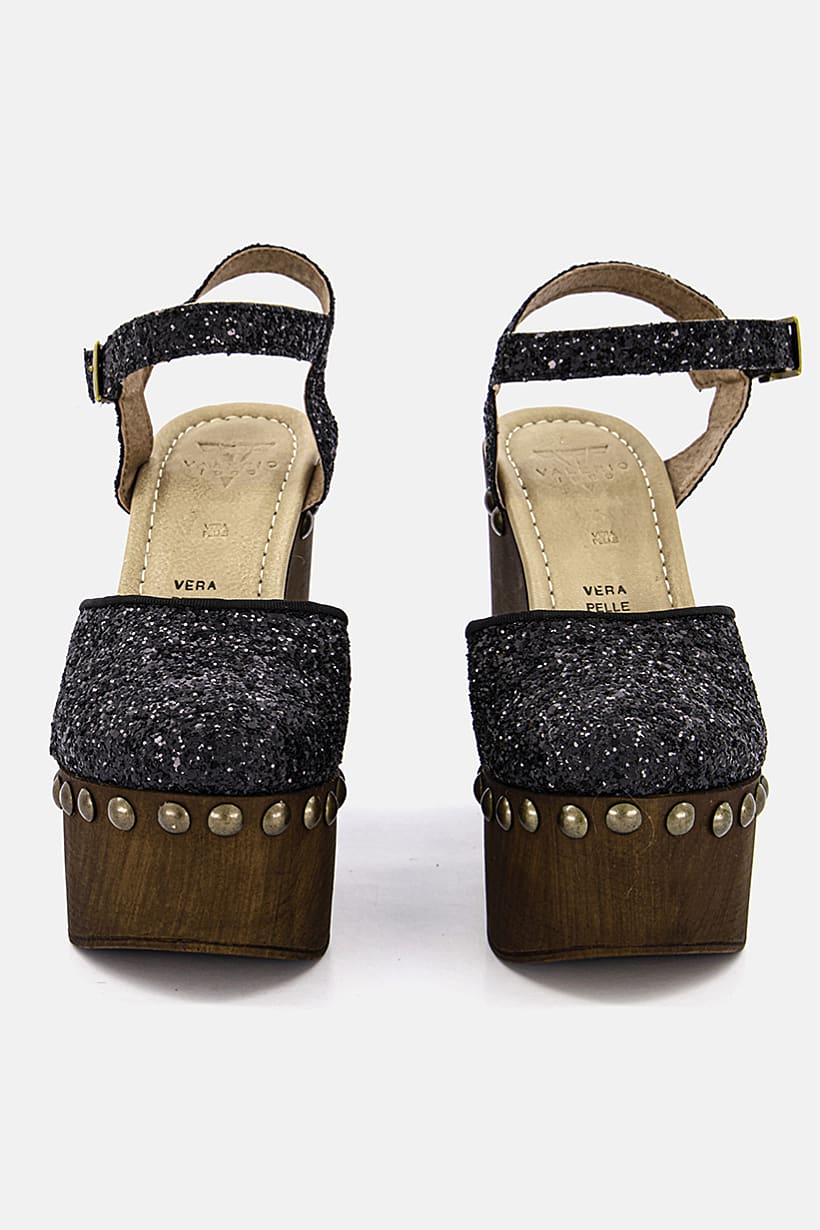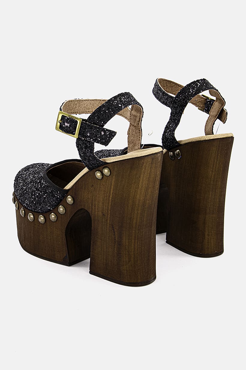Heel Style : Block heel, Ideal For : Women, Shoe Closure : Adjustable buckle closure, Sole Material : Wooden Sole, Toe Style : Closed toe, Occasion : Casual, Shoe Material : Synthetic Patent Leather, Color Family : Black,