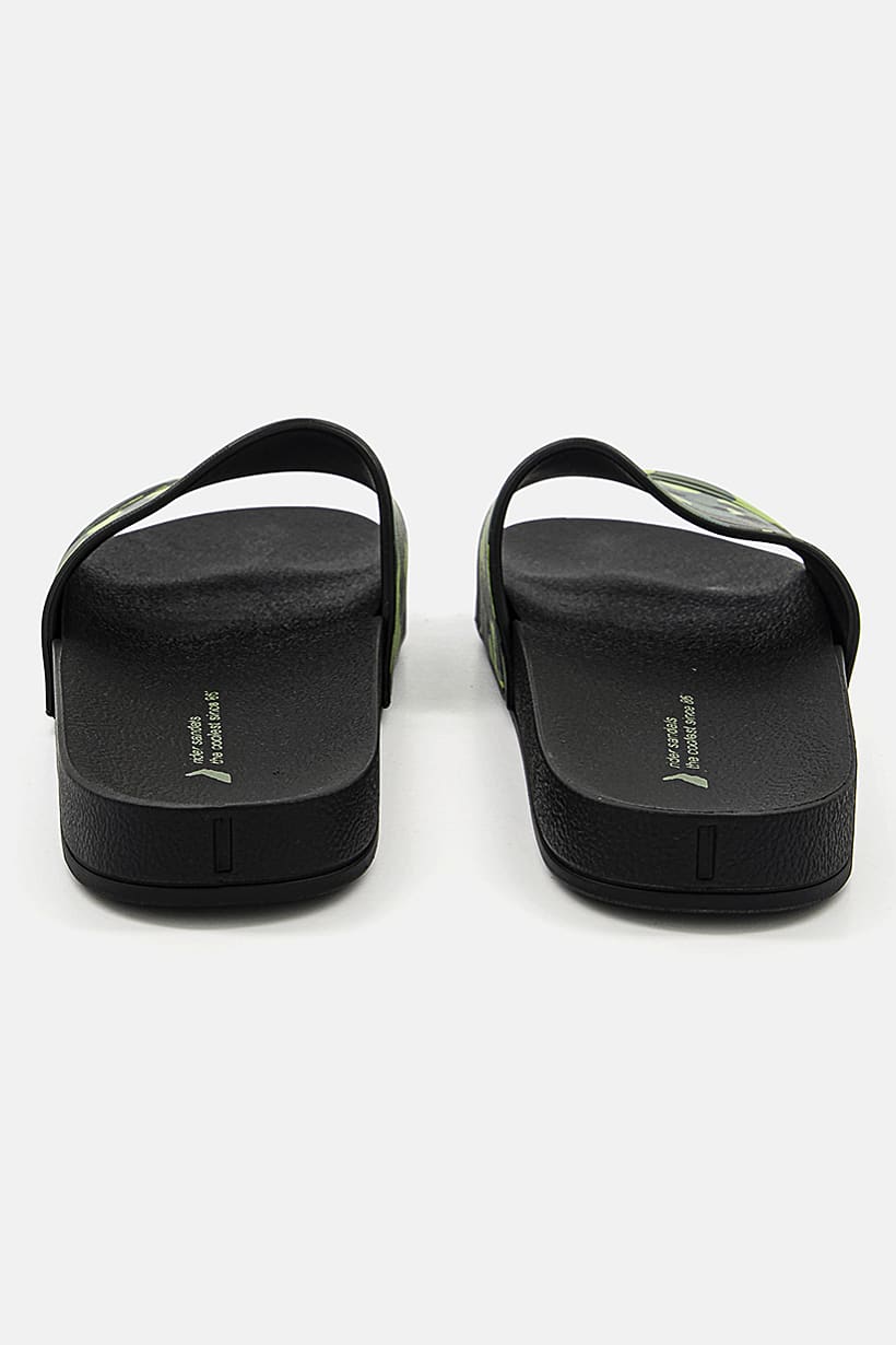 Men Camouflage Detail Slip On Slides, Black and Dark Green