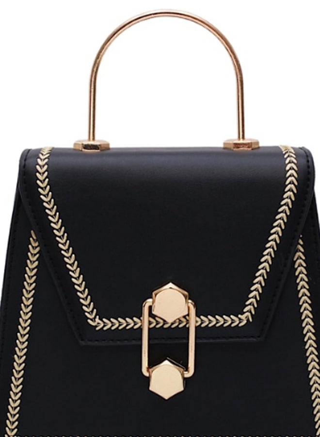 Black and Gold Crossbody Bag with a Vintage Casual Style.