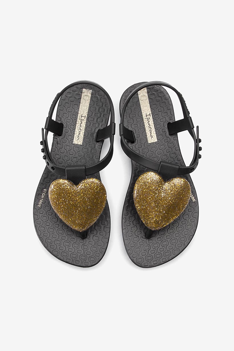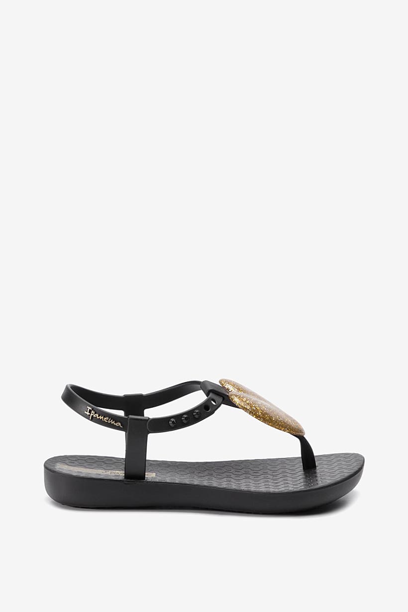 This product features a pair of open-toe shoes with an adjustable buckle closure, making it ideal for casual occasions. The shoes are made of rubber material, with a rubber sole, and are available in black and gold color options. These shoes are perfect for girls who prefer a simple and minimalist style.