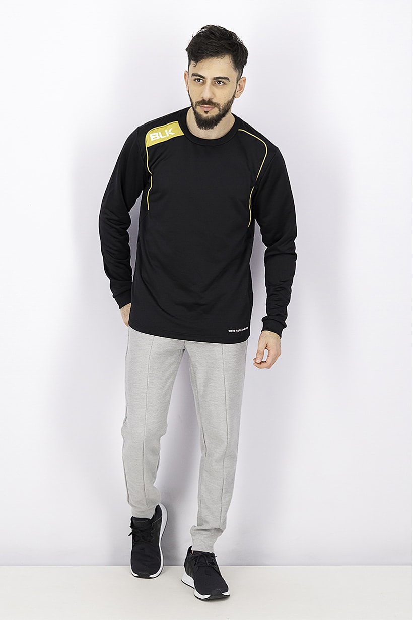 | sub_Categories | Men Clothing, Sportswear, men brand logo round neck long sleeve shirt black and gold |