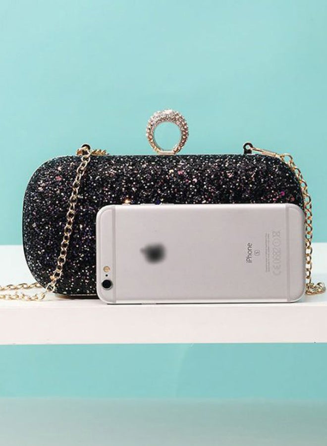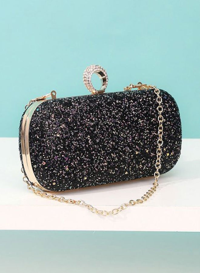 | nameOriginal | Sequin Studded Chain Bag Black/Gold |