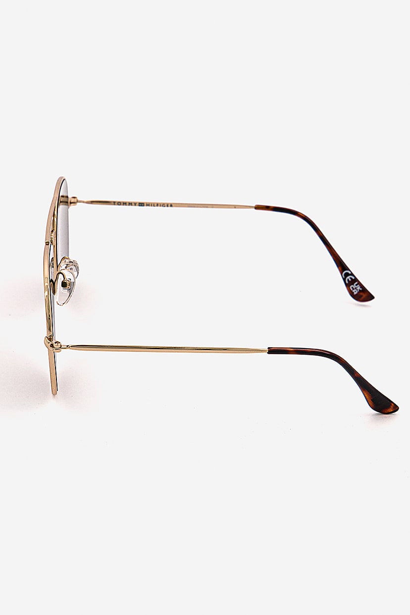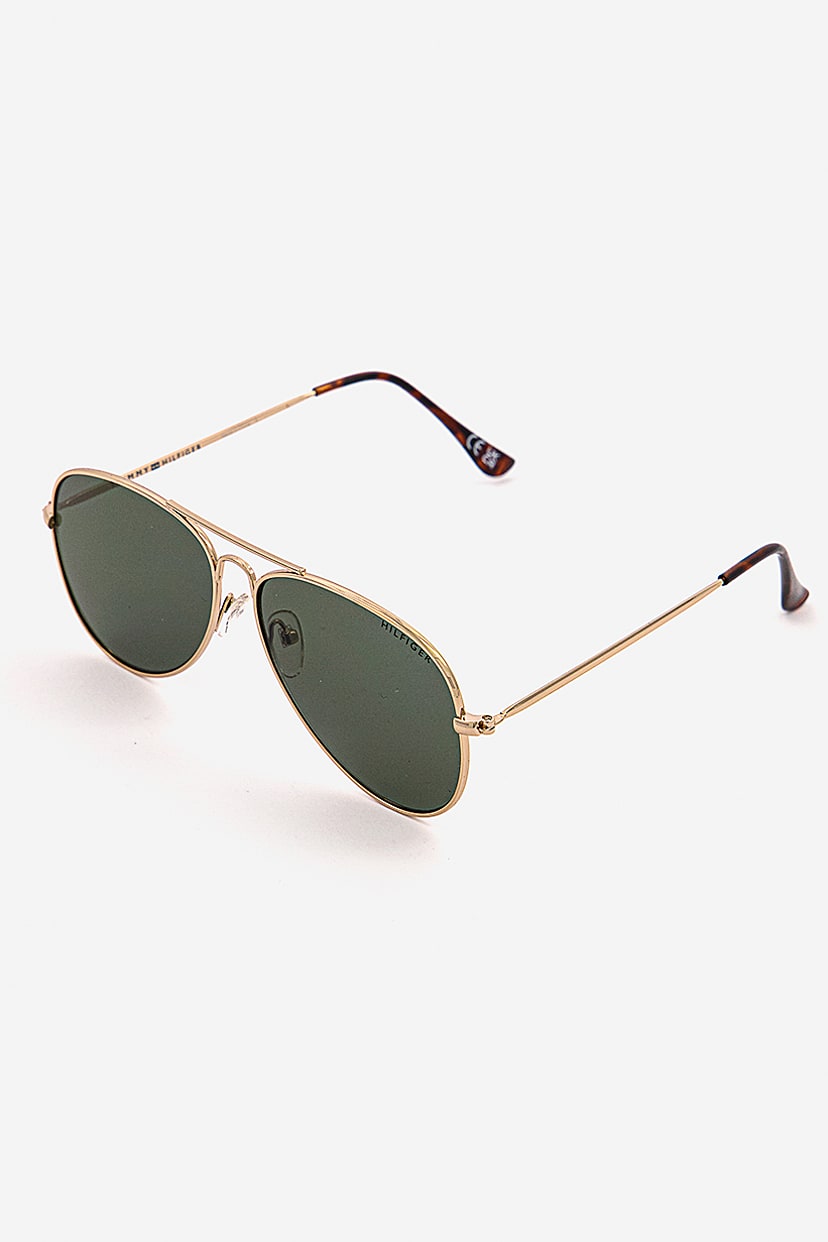 This product boasts a full rim gold frame with black lenses made of durable acetate material. The lenses also provide protection against harmful UV rays. Additionally, the sunglasses come equipped with adjustable nose pads for a comfortable fit. The color family of this product is black.