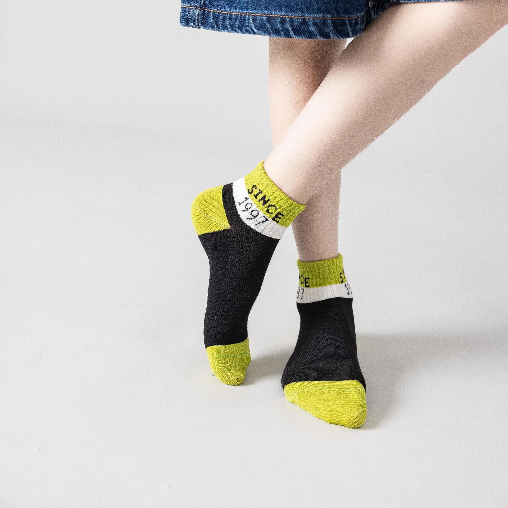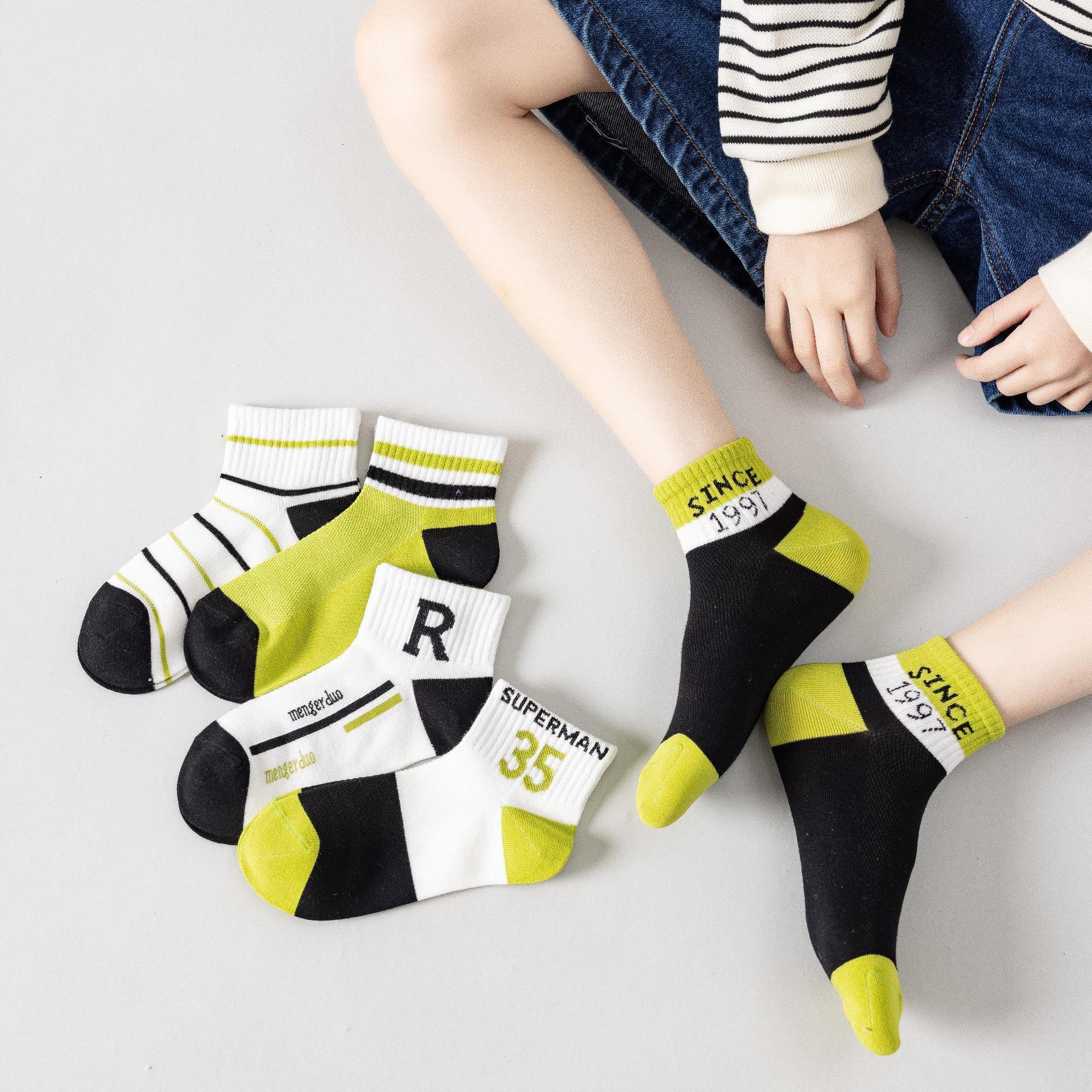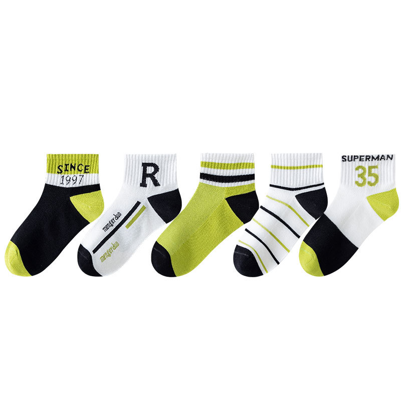 | nameOriginal | Black and green color children's socks in stock wholesale student sports summer mesh socks elastic comfortable combed cotton material socks |