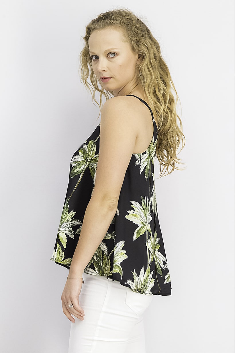| sub_Categories | Women Clothing, Tops & Tees, women printed sleeveless camisole black and green |