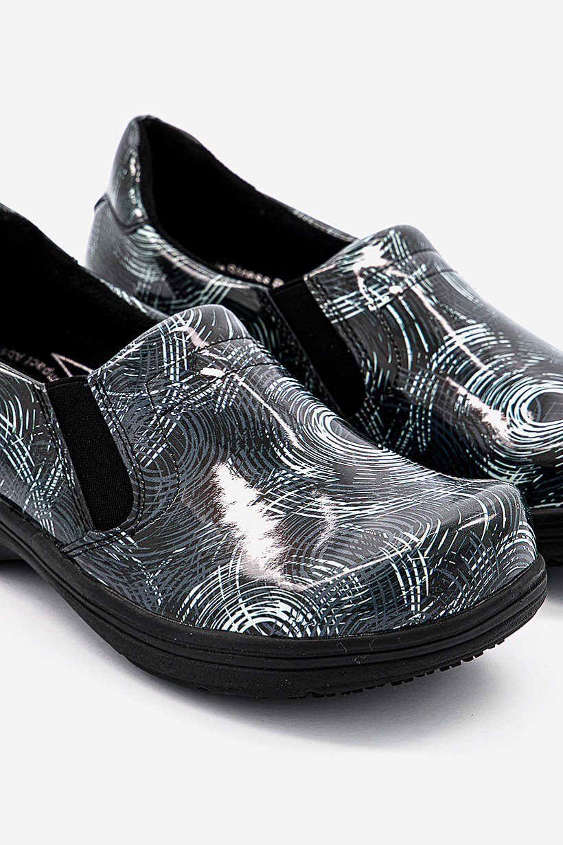 | nameOriginal | Women Slip On Resistant Clog Work Shoes, Black and Grey Abstract Print |