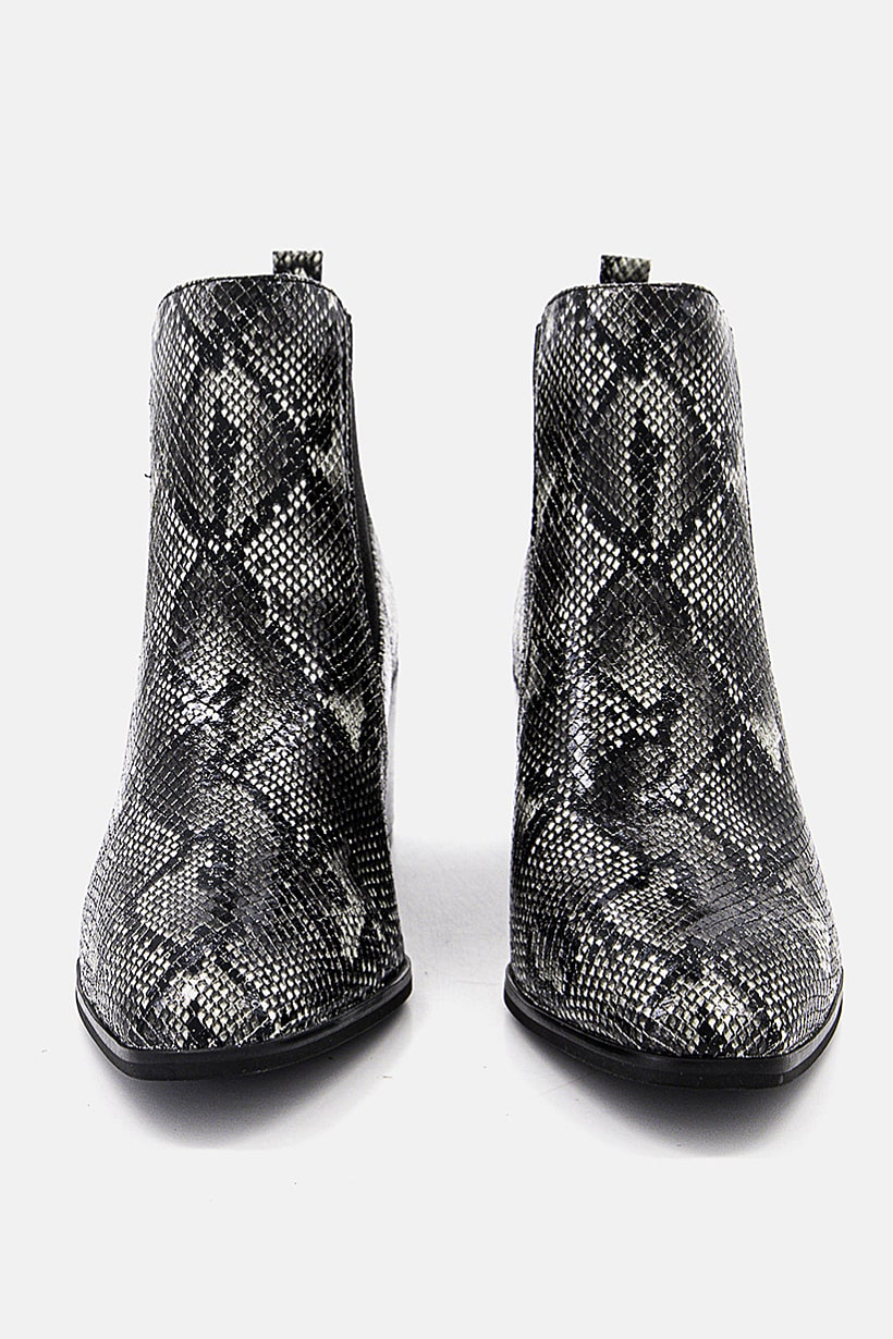 | nameOriginal | Women Parson Snakeskin Pattern Ankle Boots, Black and Grey |