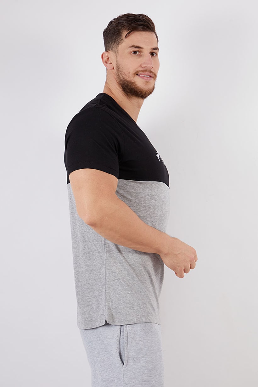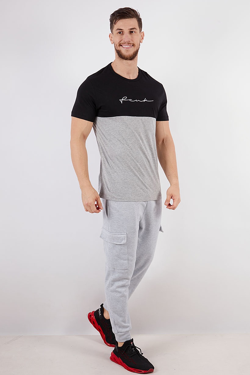 | nameOriginal | Men Crew Neck Short Sleeve Embroidered Logo T-shirt, Black and Grey |