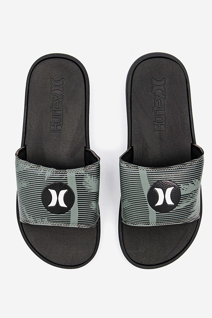 | nameOriginal | Men Slip,On Brand Logo Slides, Black and Grey |