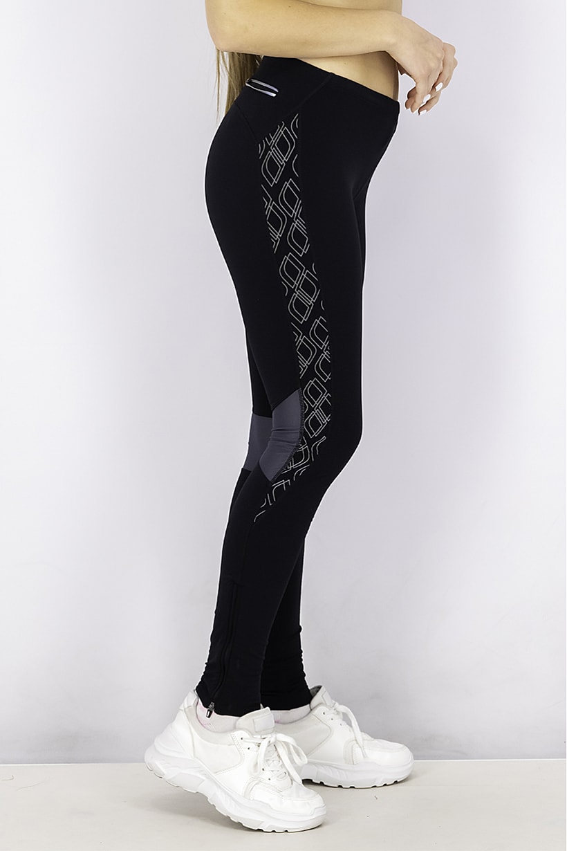 Women Clothing, Sportswear, women drawstring printed tights black and grey