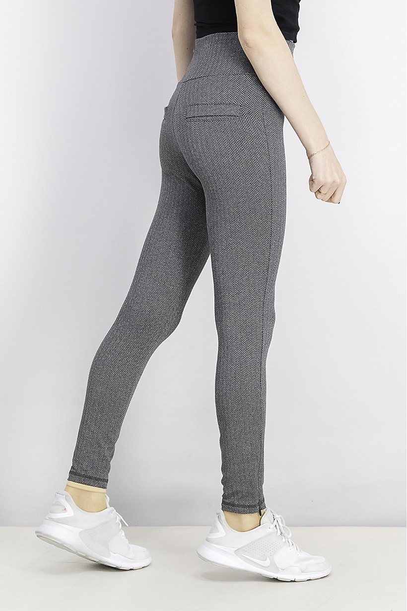 These leggings are perfect for women who love to train. They feature a straight hem and elastic waistband for a comfortable fit. The herringbone pattern adds a stylish touch to the 87% polyester and 13% elastane fabric. These leggings have a pull-on closure and no pockets, making them ideal for sports. They are also machine washable for easy care. The color family is grey.