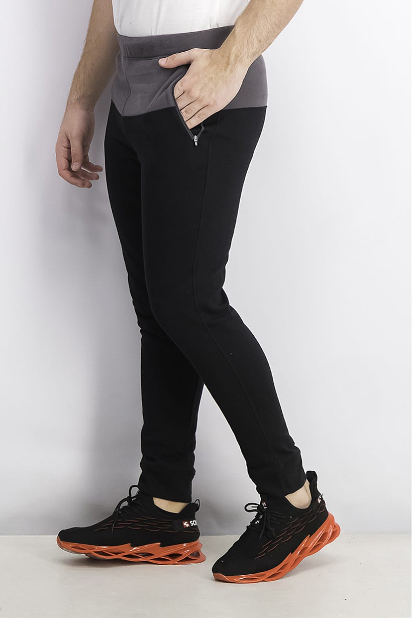 | sub_Categories | Men Clothing, Sportswear, men regular fit zipper pocket pants black and grey |
