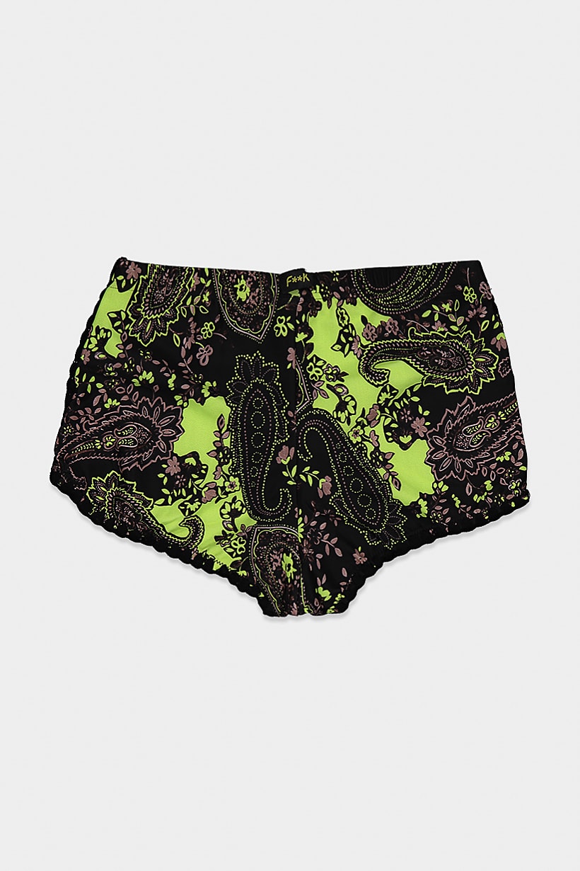 Kid Girls Alloverprint Paisley Short, Black and Lime Combo