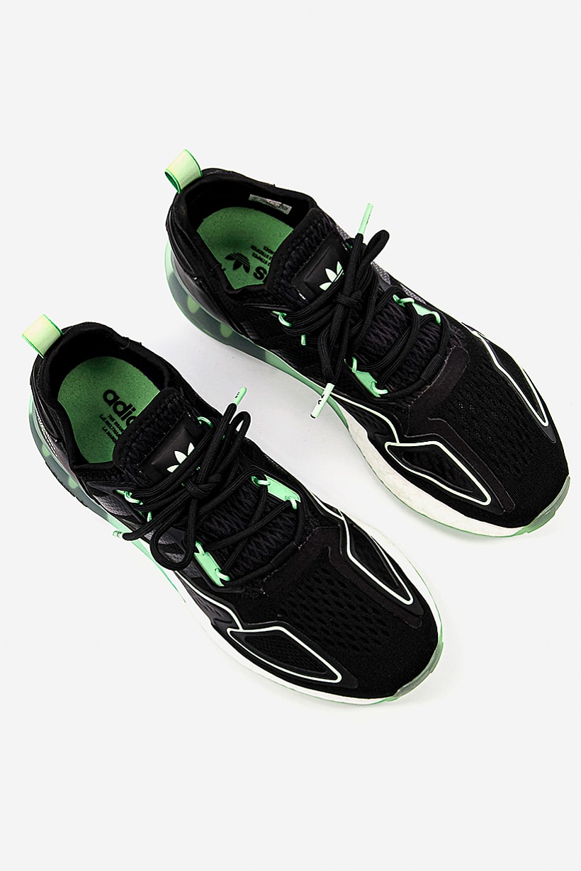 Black and Mint Sports Shoes for Men with ZX 2K Boost Technology.