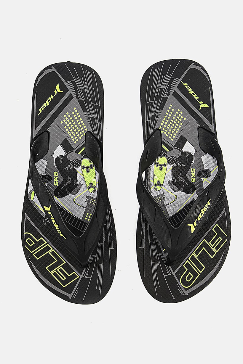 | sub_Categories | Shoes, Slides & Slippers, men graphic print slip on slippers black and neon green combo |