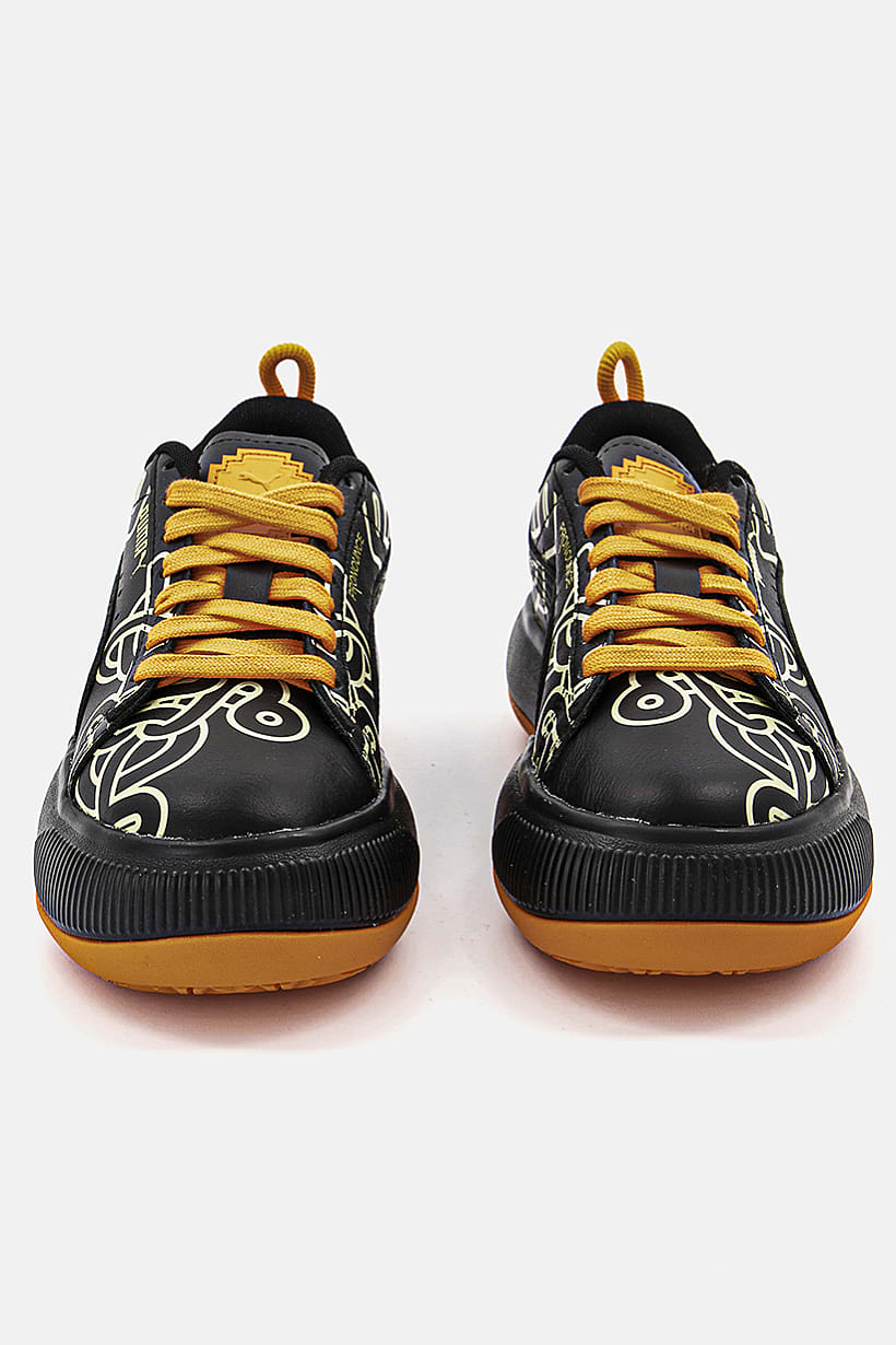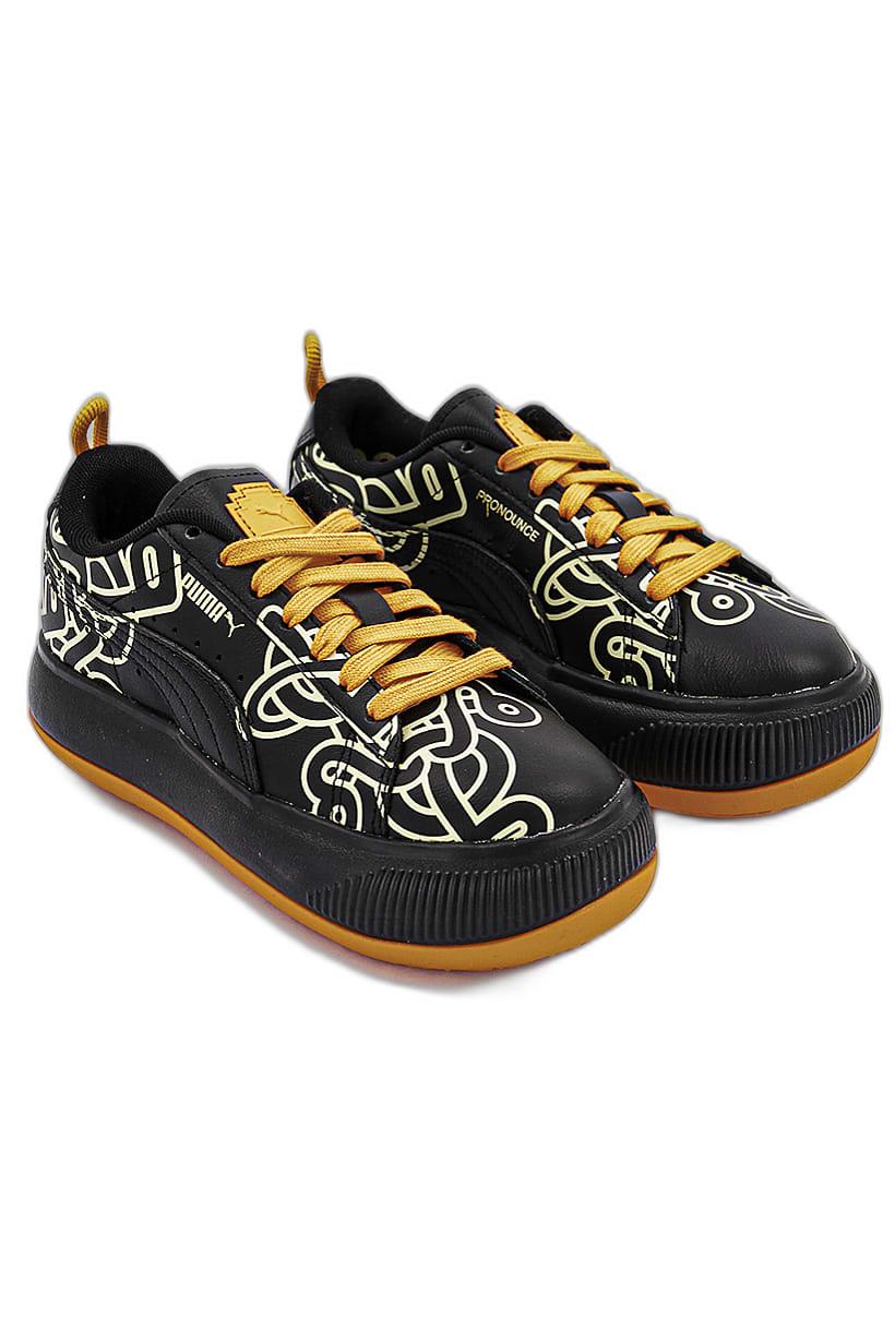 Women Suede Mayu Pronnounce Shoes, Black and Orange