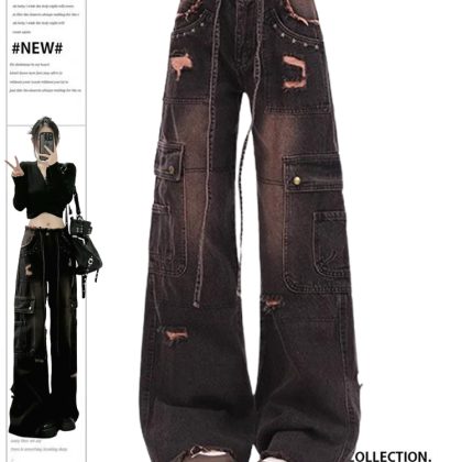 | nameOriginal | Black and pink American retro high-waisted casual trousers overalls |