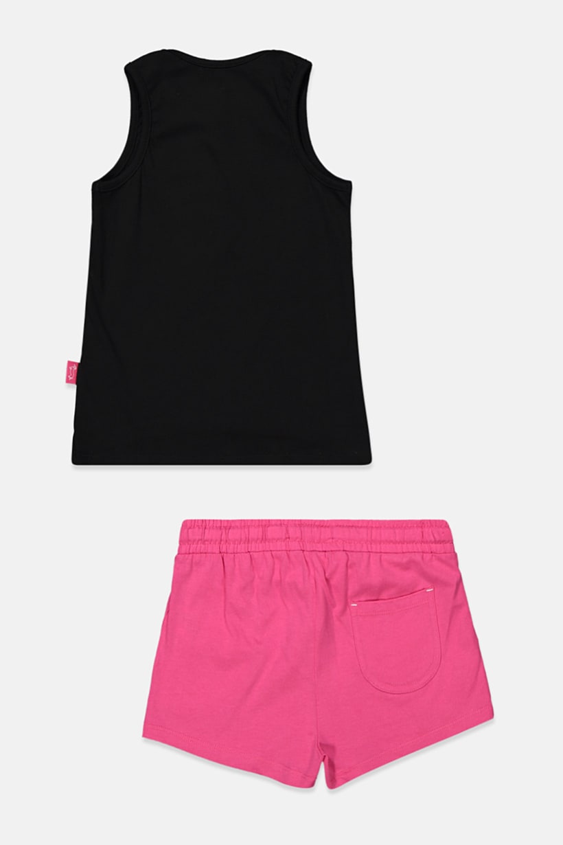 | nameOriginal | Kids Girl 2 Pieces Graphic Print Top With Short, Black and Pink |