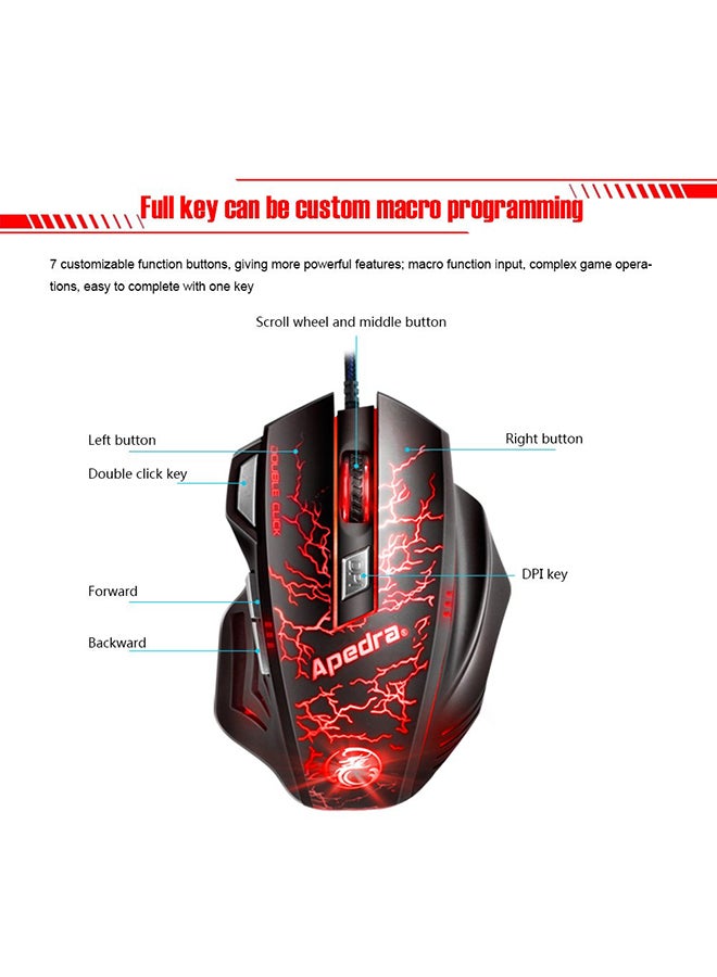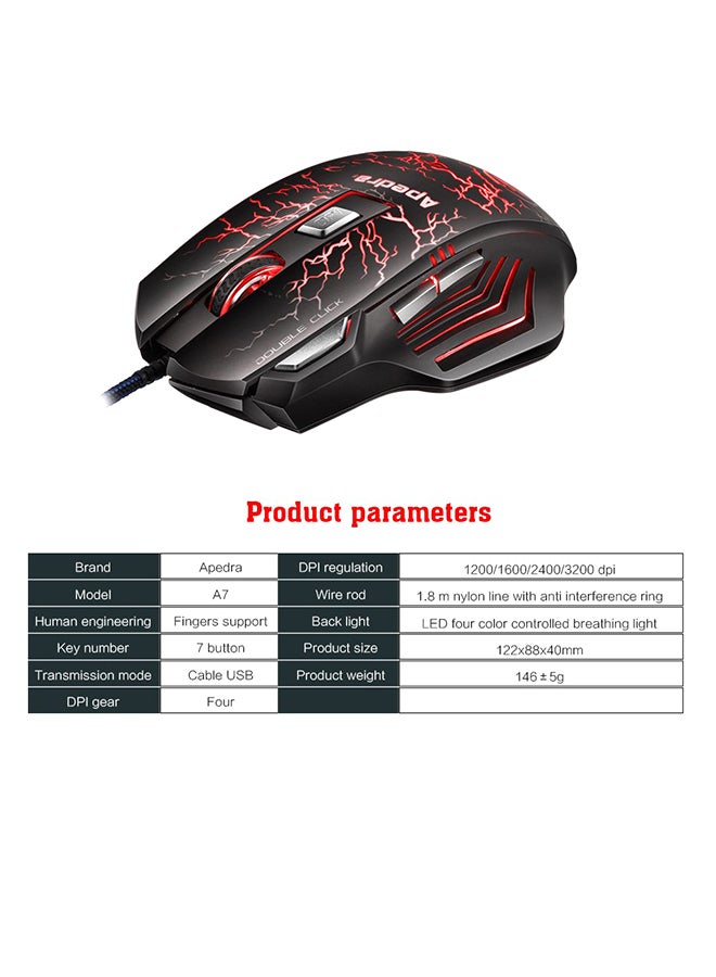 Black and red A7 gaming mouse compatible with Windows XP/Vista/7/8/10/MAC OS X.