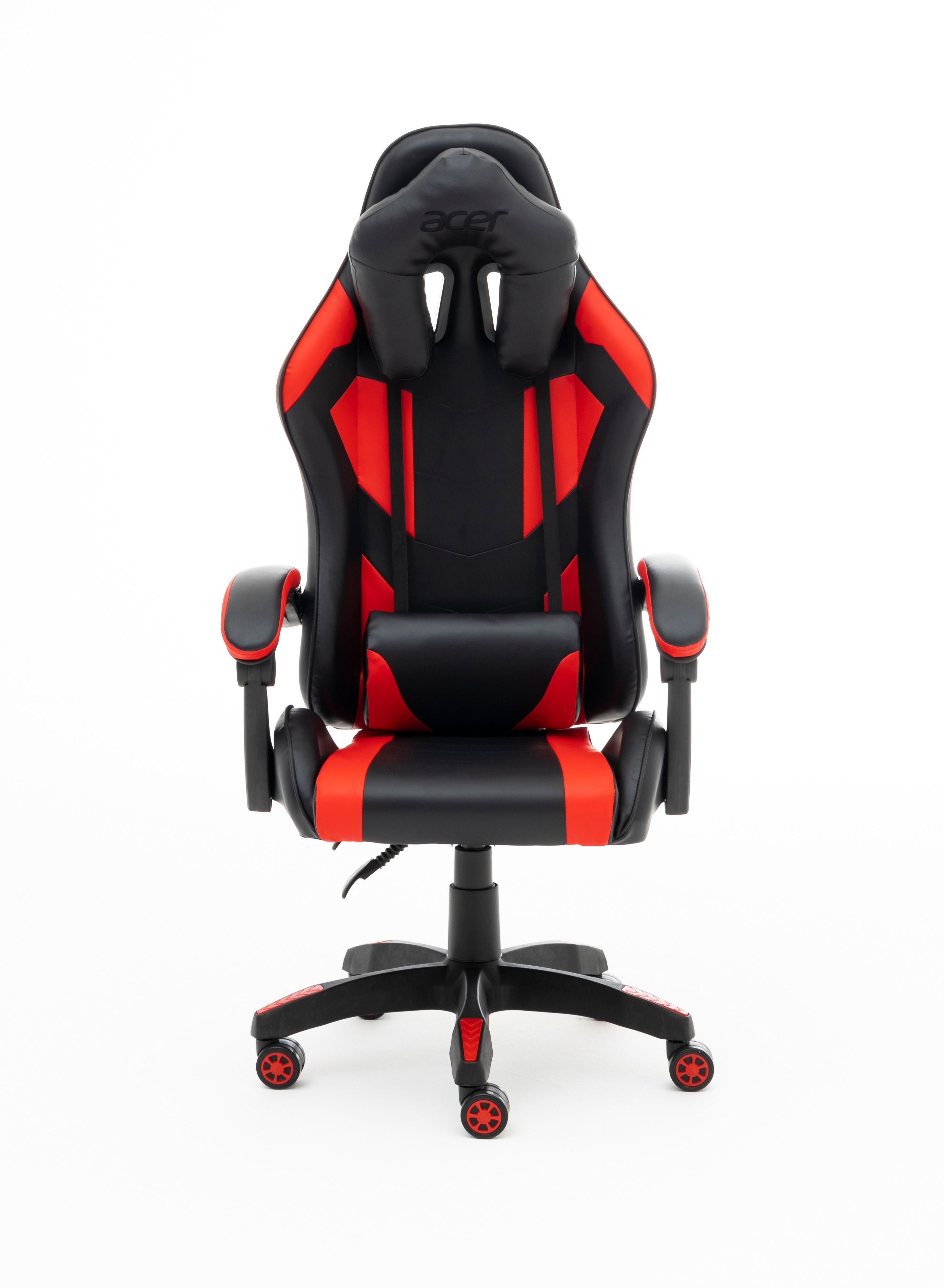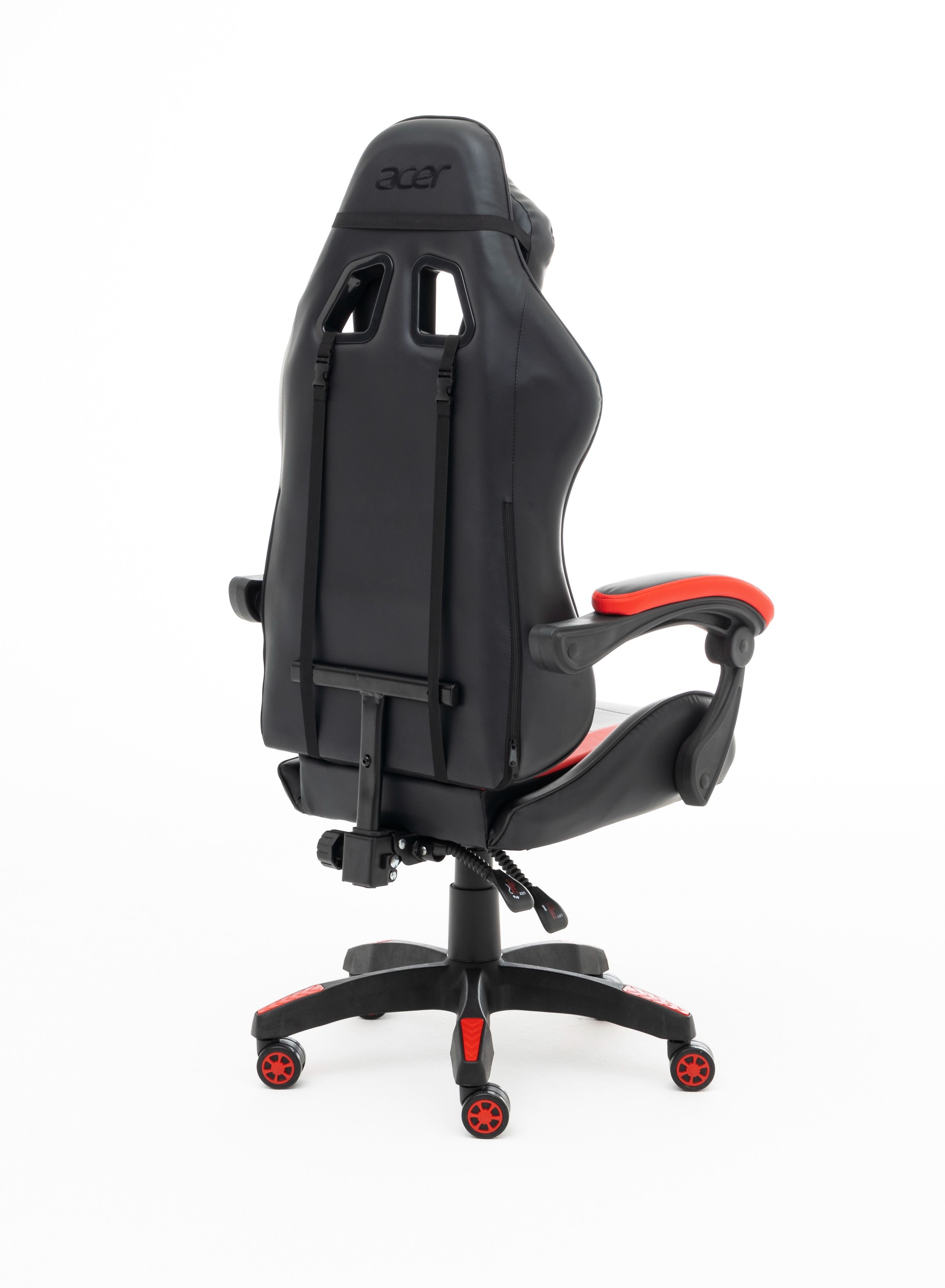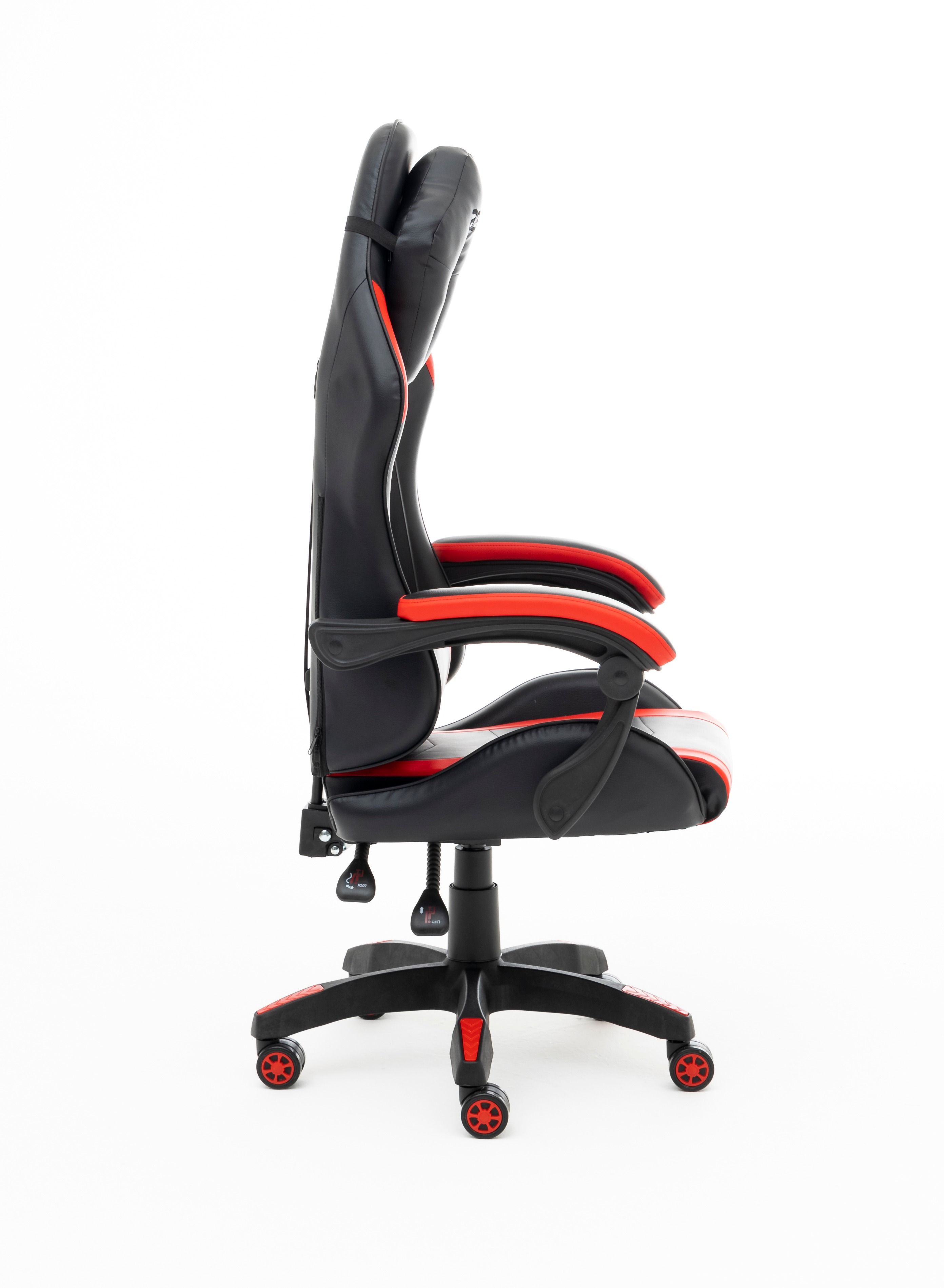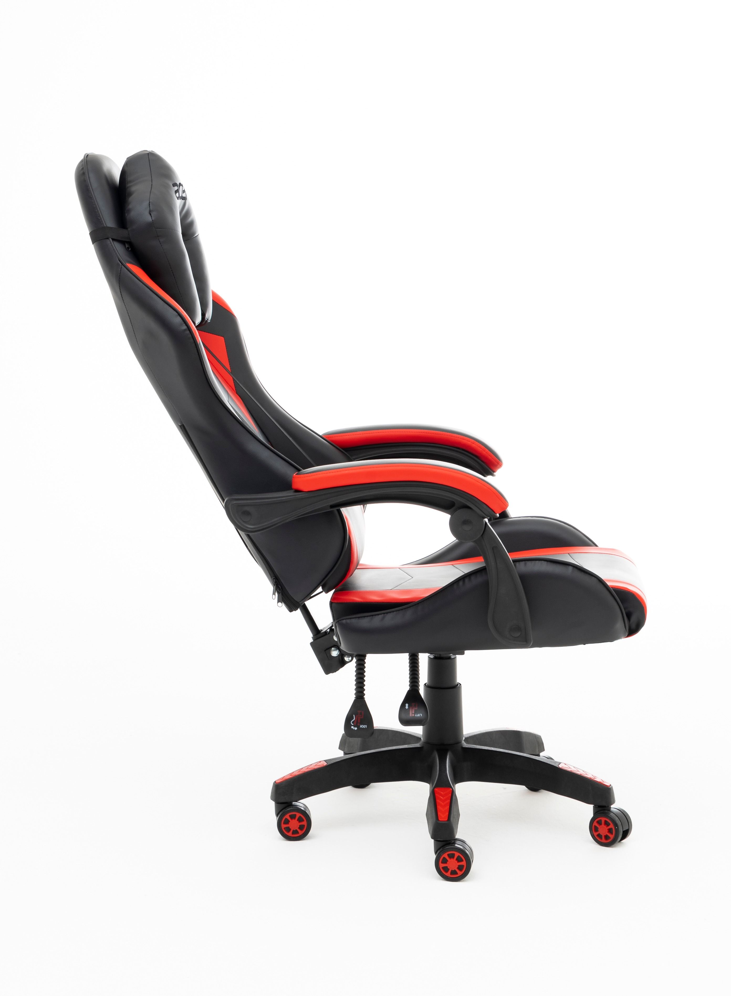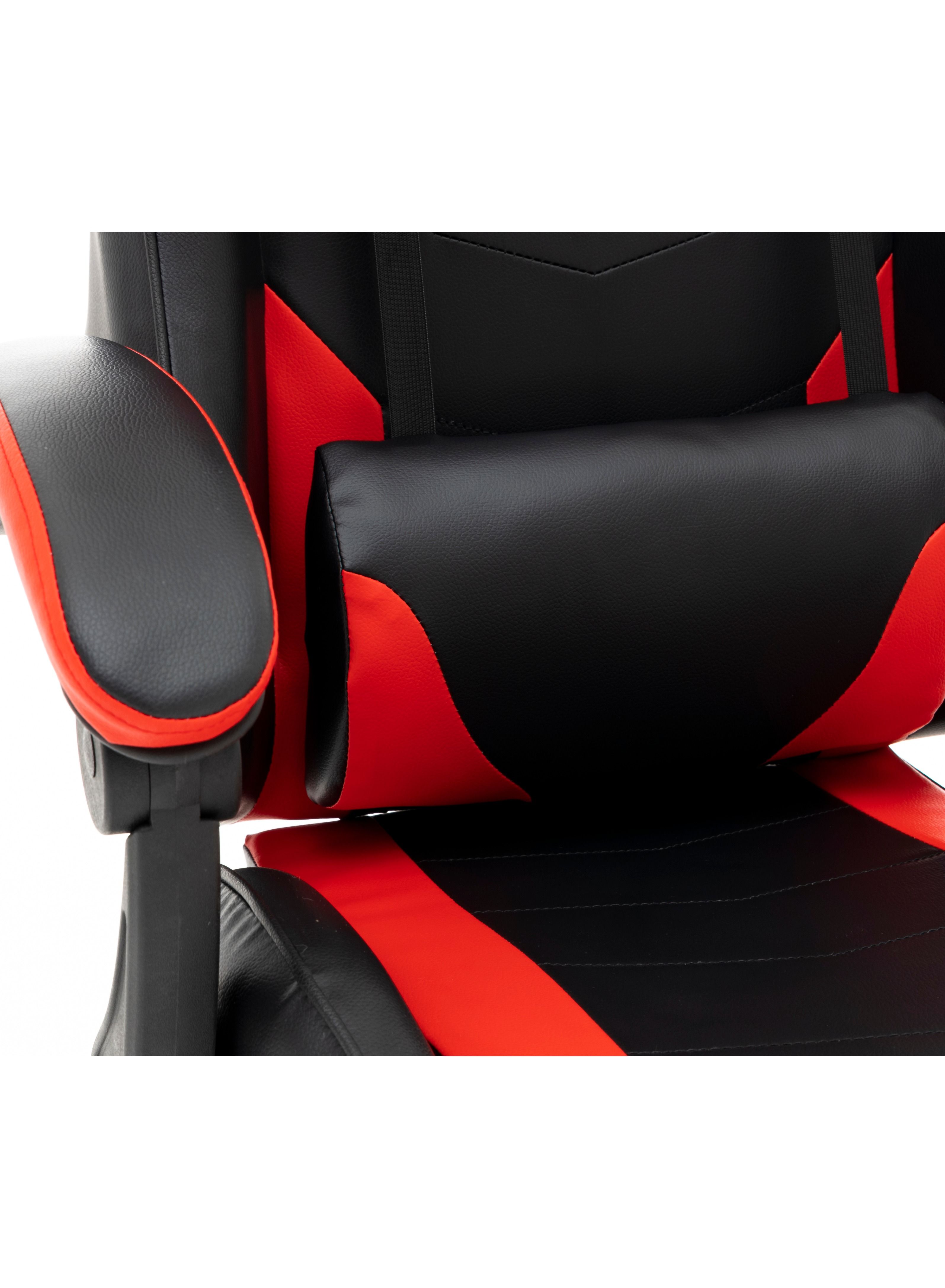 The chair features a 10cm height adjustment, allowing you to customize the height to your preference. The 135° degree recline function allows you to relax and take a break from work or gaming. The chair is upholstered in a sleek black and red faux leather, giving it a modern and stylish look.