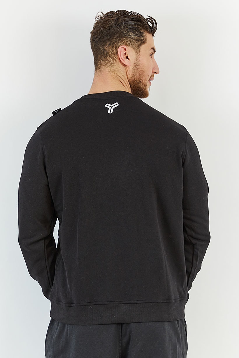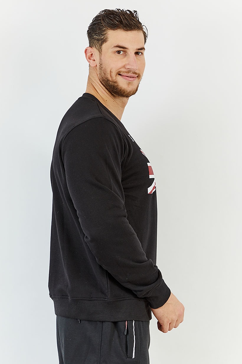 Black and Red Men’s Sport Sweatshirt with Brand Logo and Crew Neck Fit.