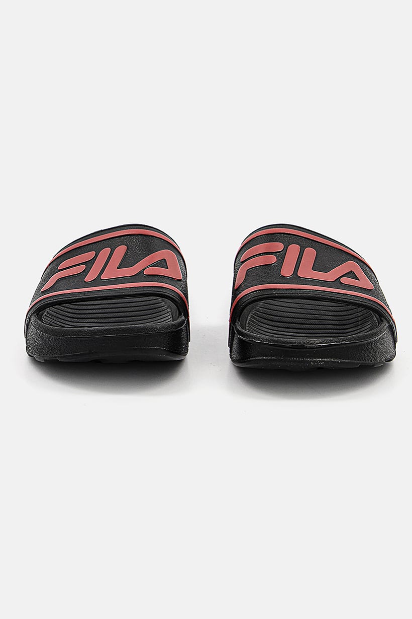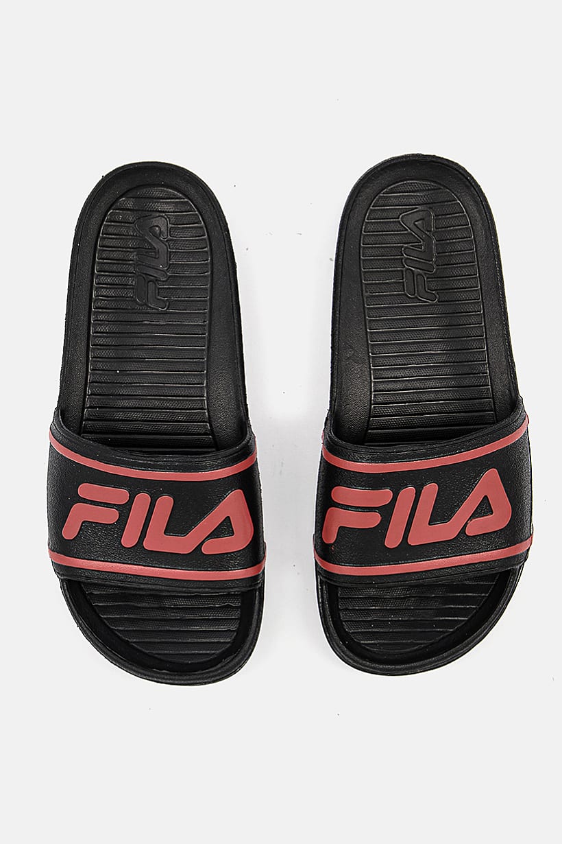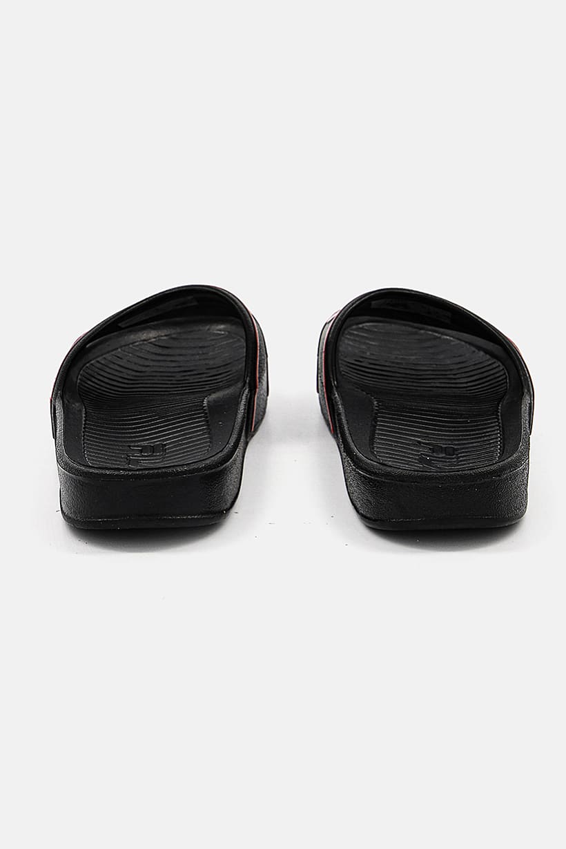 Boys Fashion, Boys Footwear, kids boy brand logo sleek slip on slides black and red