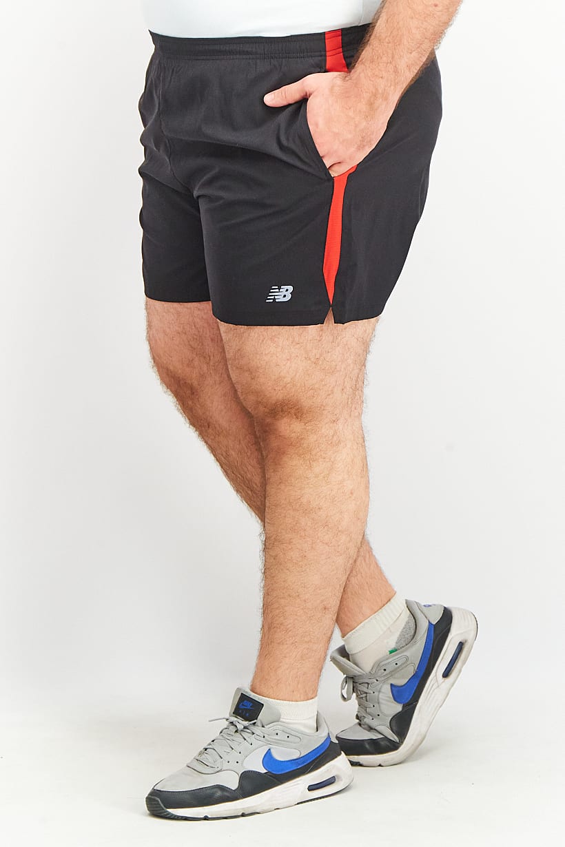 Black and Red Sportswear Training Shorts for Men with 5-Inch Inseam.