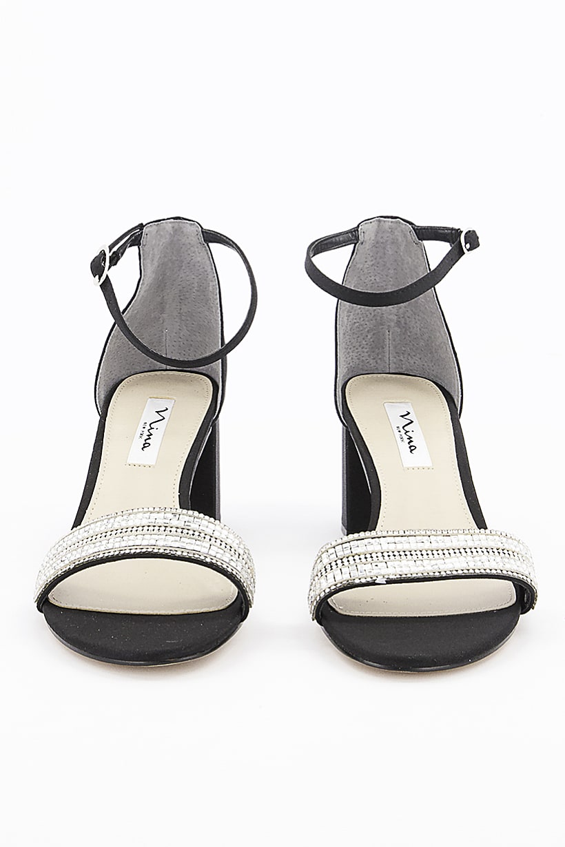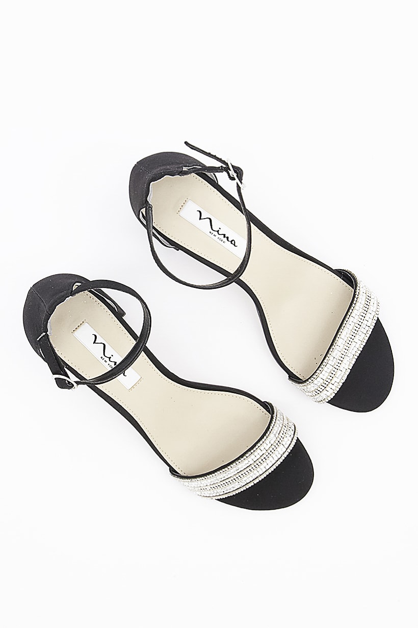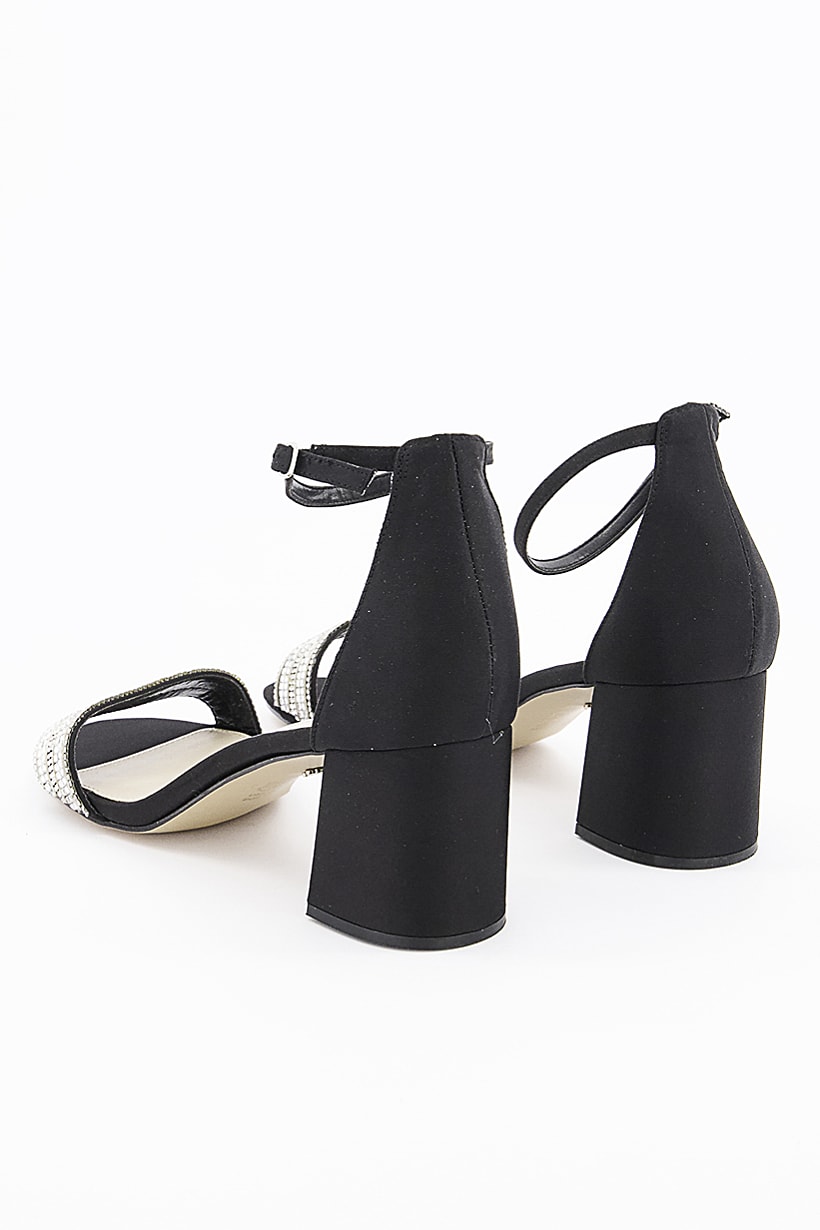 Heel Height : 2.5" / 6.3 cm, Heel Style : Block heel, Ideal For : Women, Shoe Closure : Adjustable buckle closure, Shoe Width : Standard, Sole Material : Rubber sole, Toe Style : Open toe, Disclaimer : Product color may slightly vary due to photographic lighting sources or your monitor settings., Embellished : Rhinestone, Occasion : Casual, Partywear, Shoe Material : Textile, Color Family : Black,