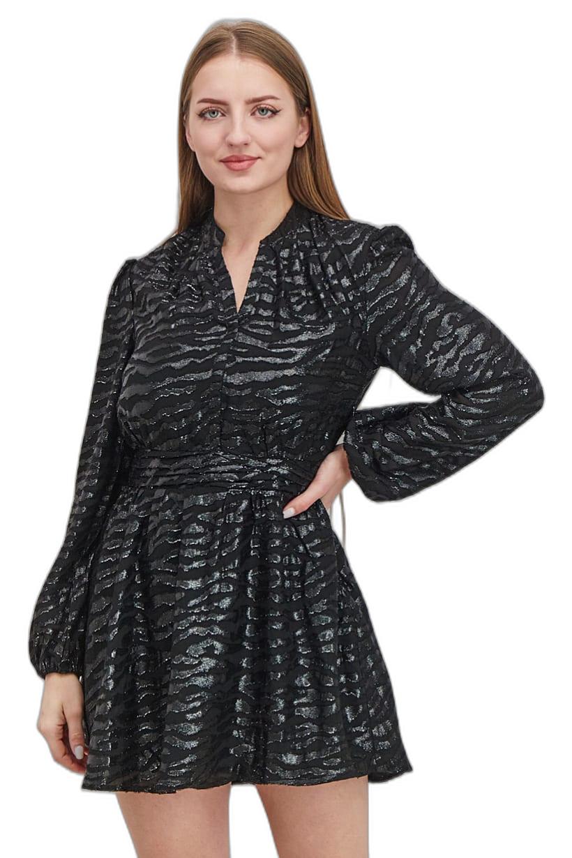 | nameOriginal | Women Textured Metallic Mini Skirt, Black and Silver |