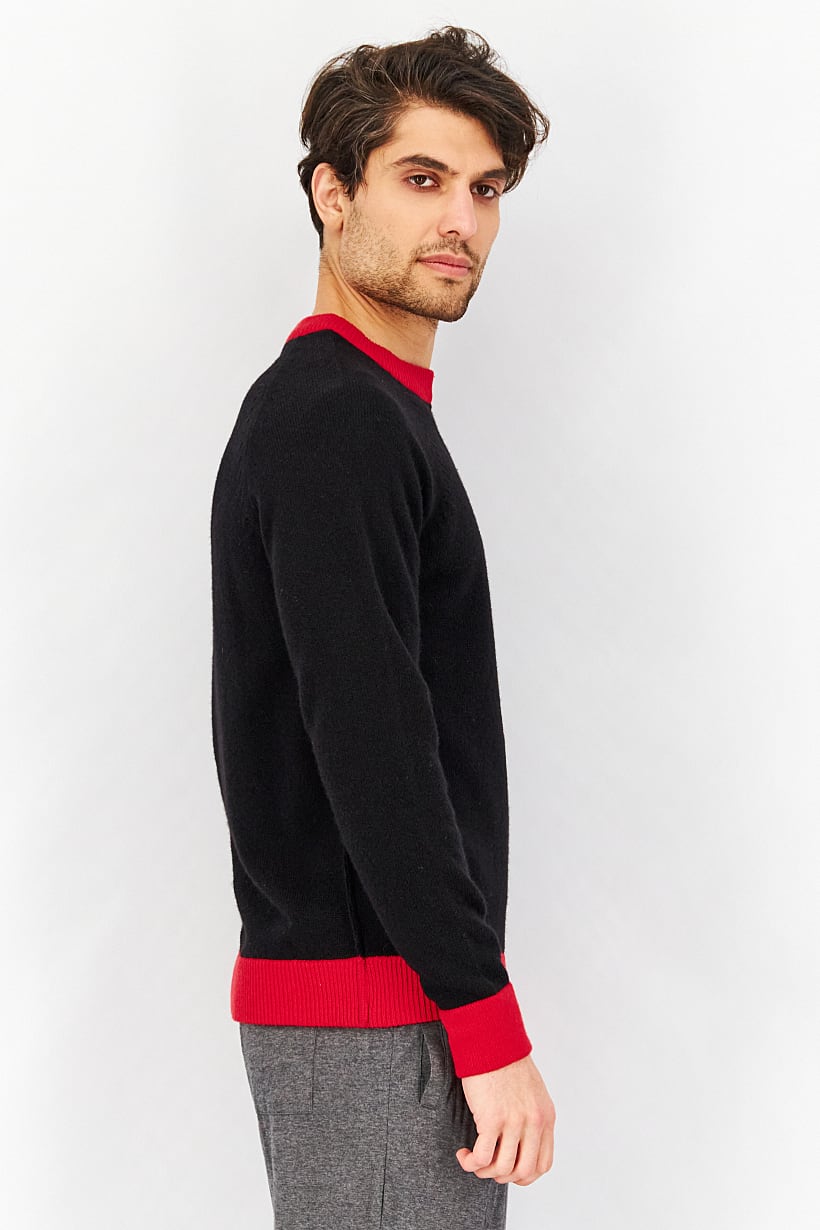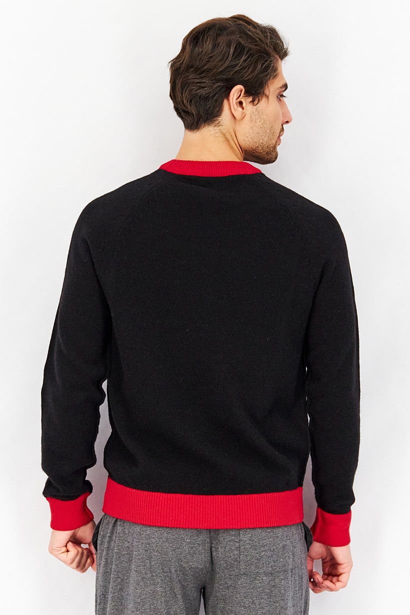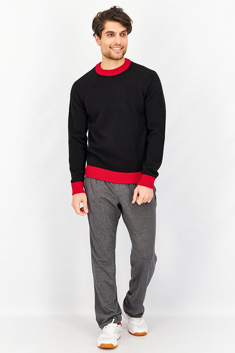 | nameOriginal | Men Crew Neck Long Sleeve Knitted Sweater, Black/Tango Red |