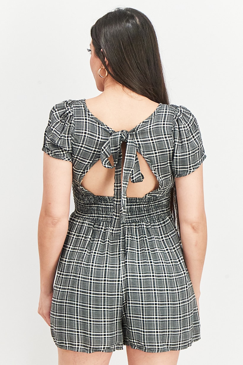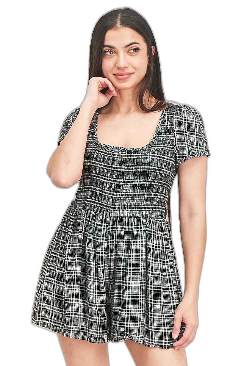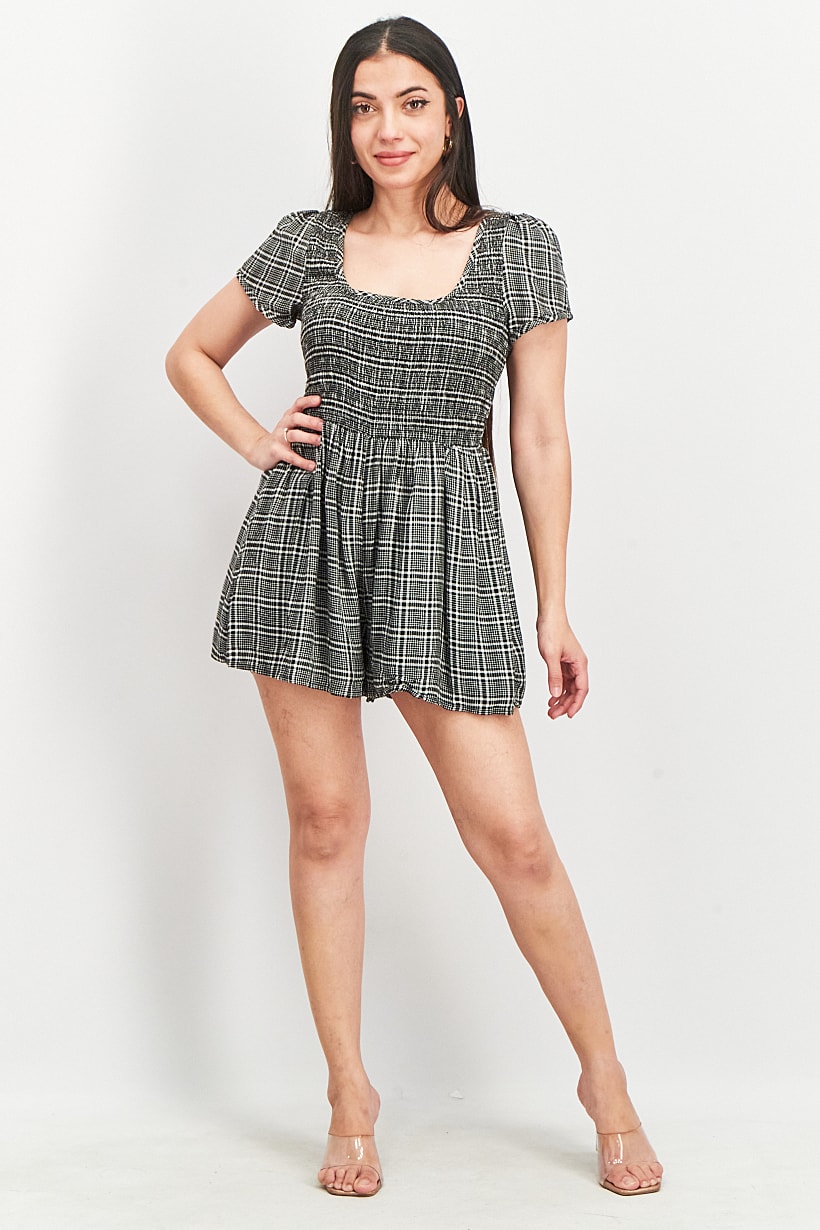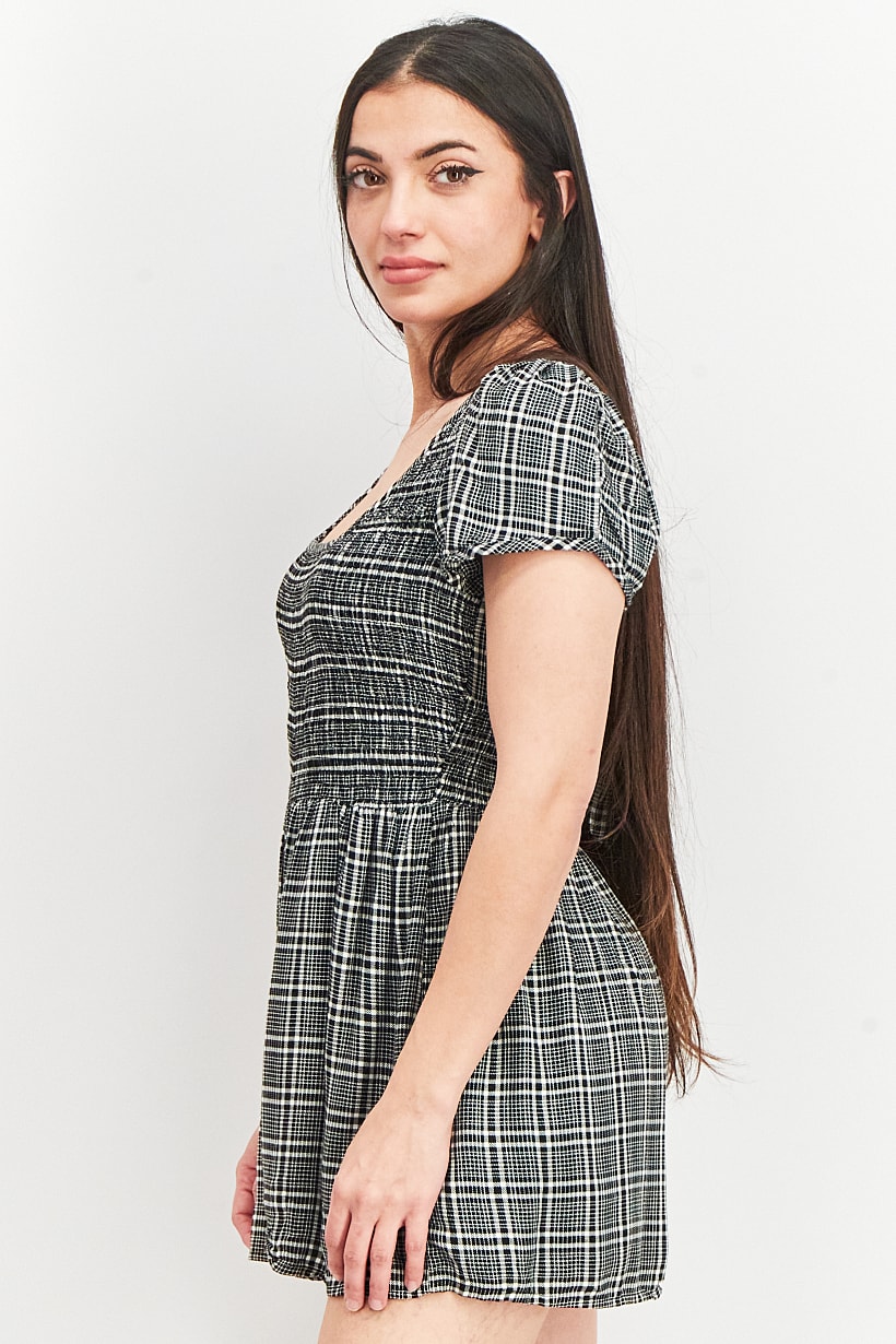 | nameOriginal | Women Square Neck Checkered Jumpsuit, Black/White |