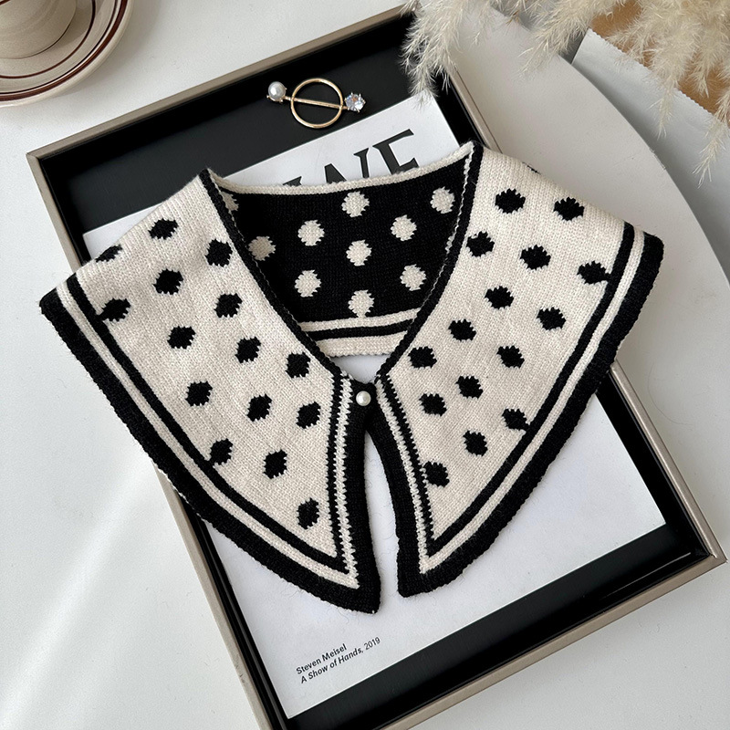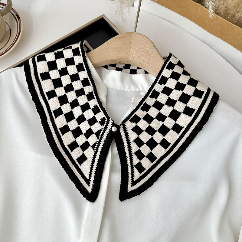 | nameOriginal | Black and white chessboard Plaid knitted shawl autumn and winter Korean style versatile neck protection Pearl small scarf elegant scarf fake collar |