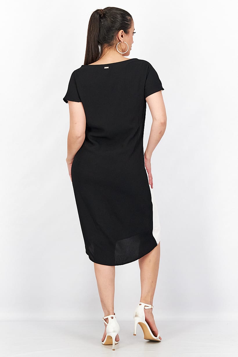 | sub_Categories | Women Clothing, Dresses, women colorblock short sleeve casual mini dress black white |